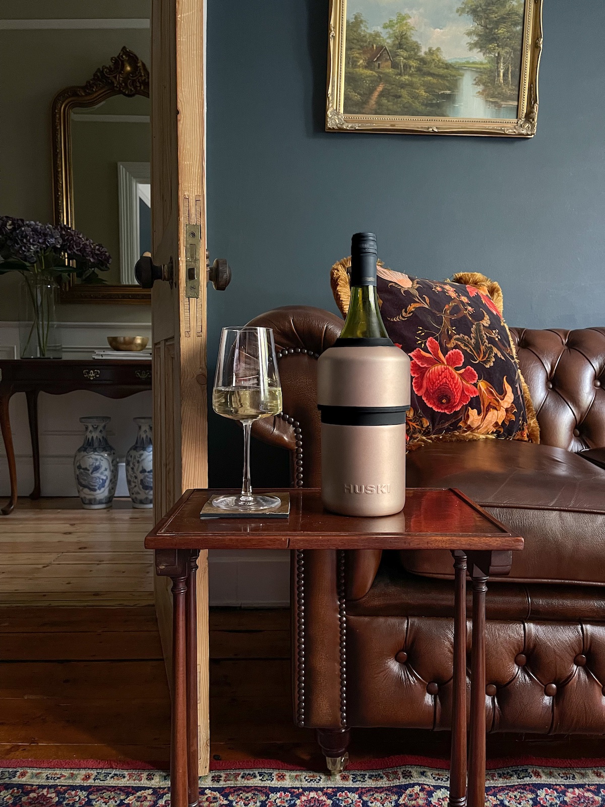 The Huski Wine Cooler works off the shelf, so all you need to do is grab a cold bottle from the fridge, put it in your Huski, tighten the lid and you’re good to go.