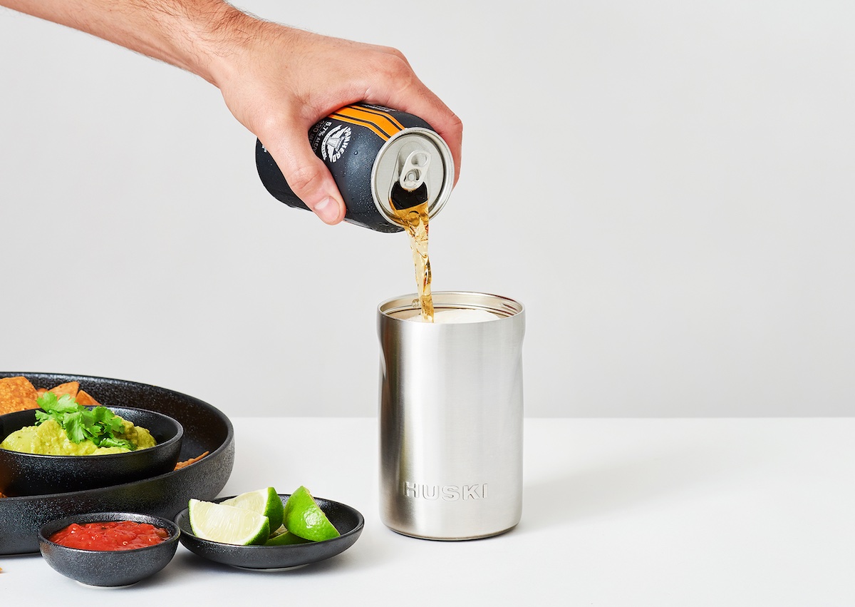 The Huski Beer Cooler 2.0 works off the shelf, so all you need to do is grab a cold bottle or can from the fridge and push it through the lid and into the cooler. Alternatively, you can pour your drink into the cooler and use it as a tumbler.