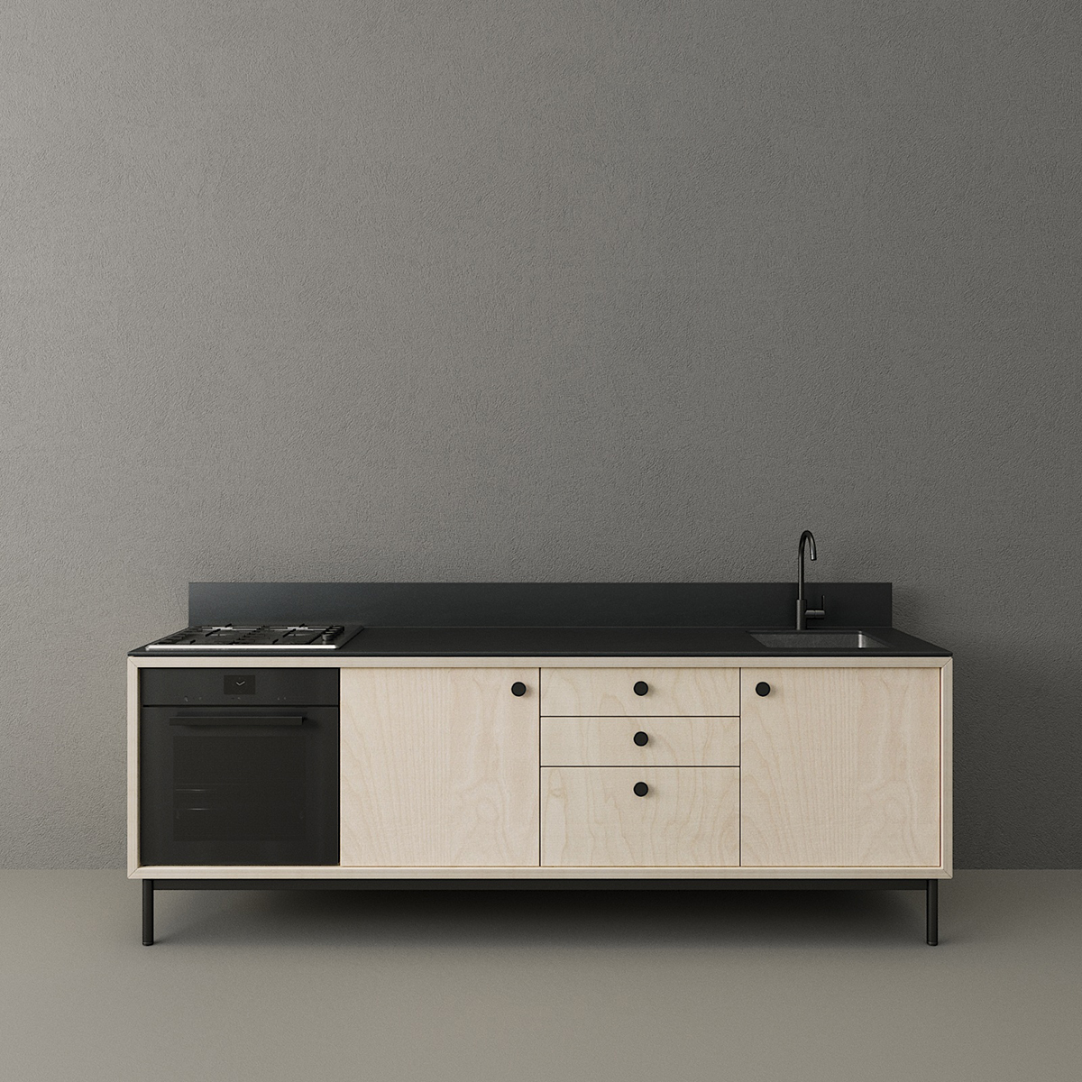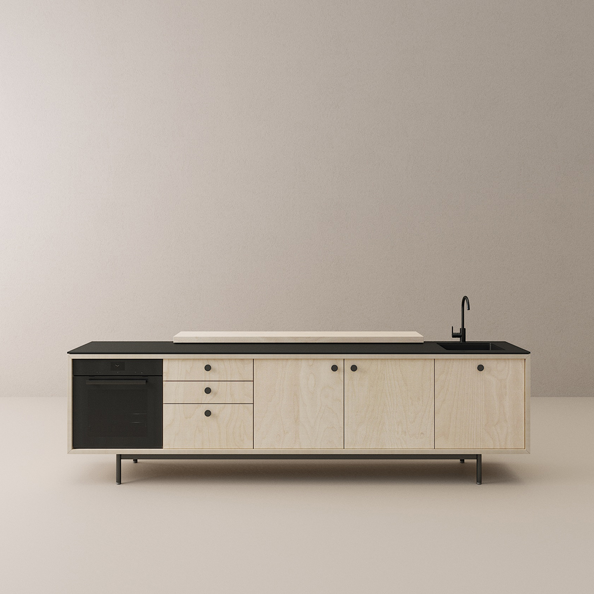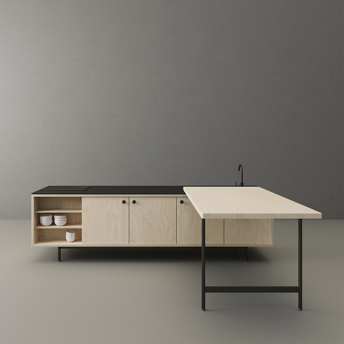 Designed as pieces of furniture, the collection allows the user to configure a fully functional kitchen space; with light pieces that give the idea of a flexible and integrated space. Each product is designed as a whole, and solves complex details such as appliance integration, light, gas, electrical and sanitary connections; allowing it to be installed in a few hours. The whole collection includes low racks with worktops, cupboards, pantries, islands and tables, all free-standing pieces that allow the user to configure a made to measure space that is able to meet their needs.