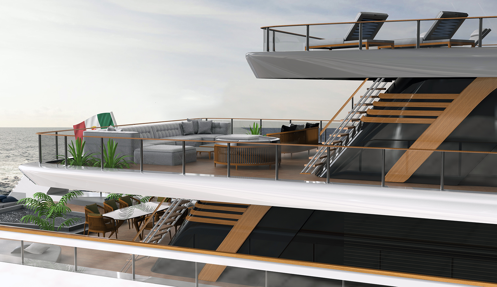 m/y ARIA is the new way to sail on a Yacht, she is the new experience on board. The Owner can relax and find a comfortable area that improves his mental health with the help of the surrounding nature. Owner and nature are the point of the project ARIA. She is designed for those who love being close to greenery, surrounding themselves of essences. The design has clean and modern lines combined with traditional wooden details of classic boats. The wooden elements give the Yacht a warm atmosphere on board.