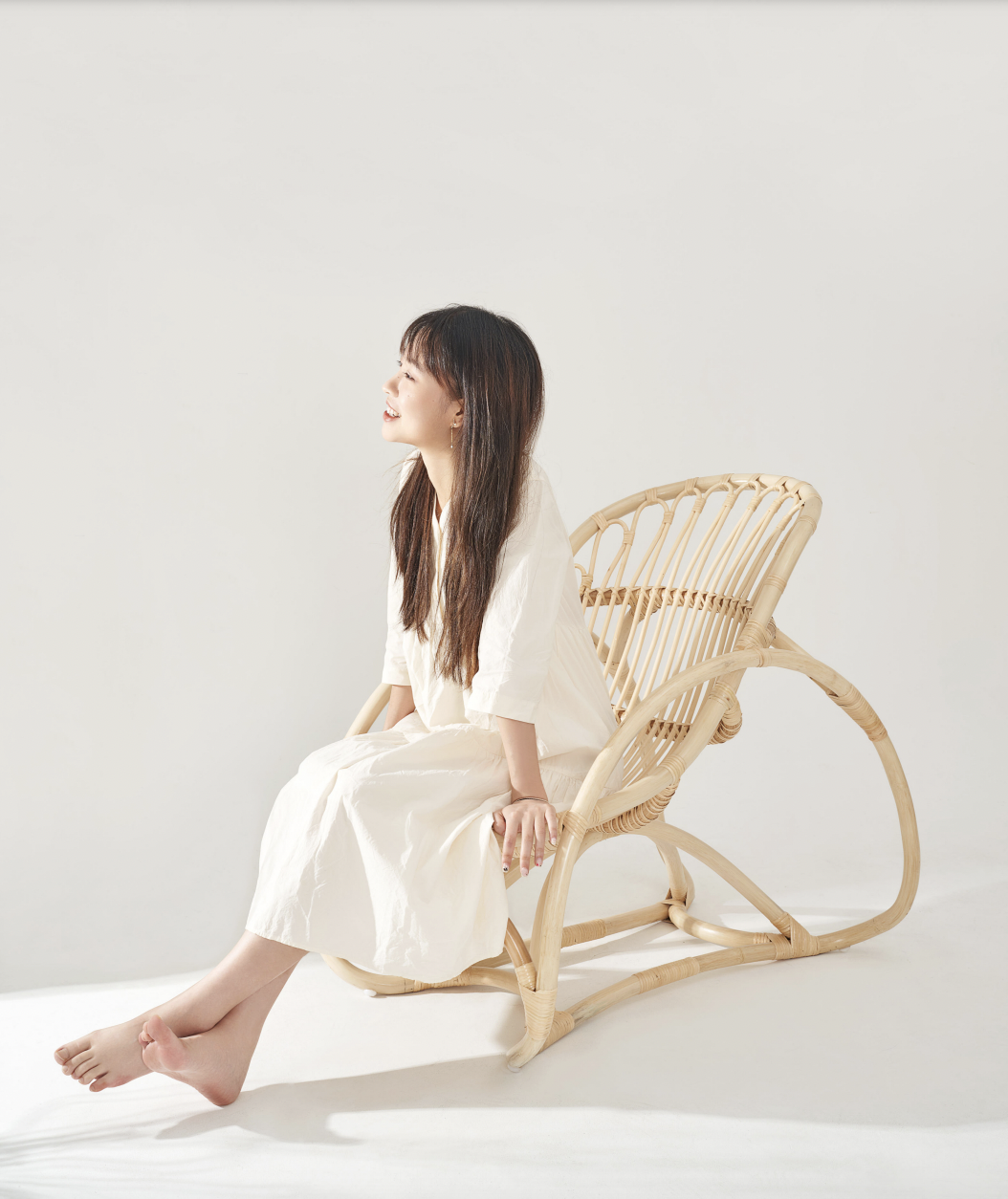 This rattan chair combines natural elements and digital-generative assistance. This recliner is rounded and smooth with beautiful curves. The circular closed-loop structure with eye-catching and symbolic features on the side is the highlight of the styling design of this rattan chair, and it also plays a role as supporting structure. The overall rattan chair is built with a broad arc and lengthy curve, which emphasizes the flexible yet tough nature of the material. The chair's back curvature is ergonomically designed, which would give the customers a comfortable and pleasant experience.