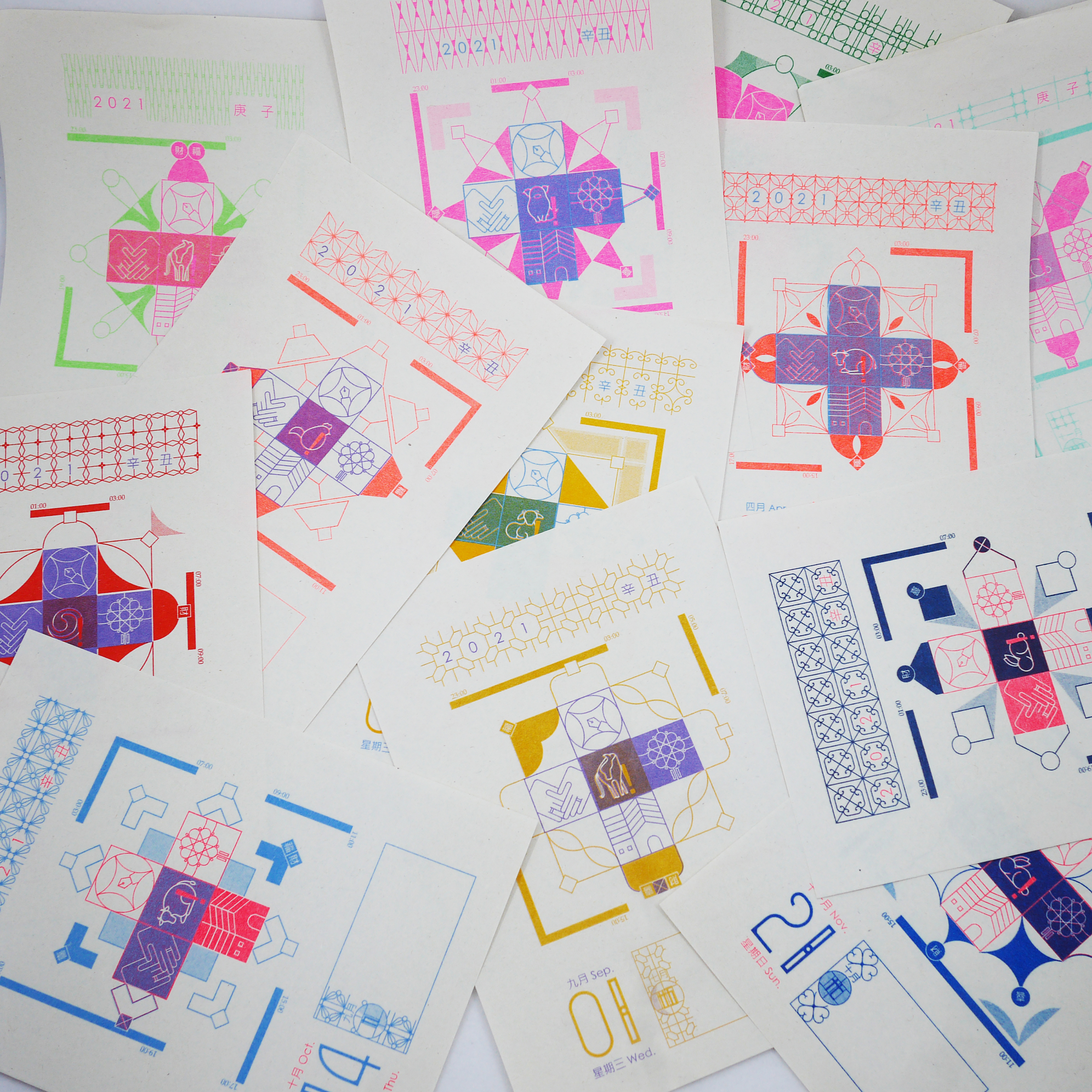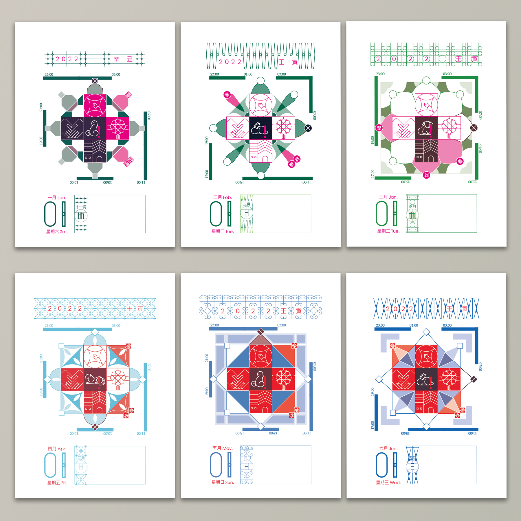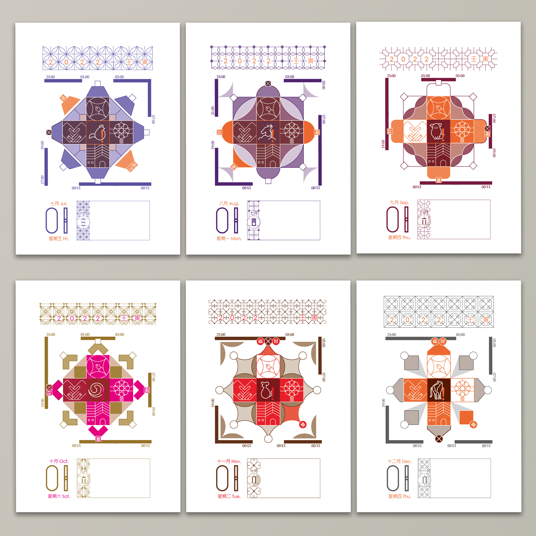Is today suitable for moving? In the 1960s to 1980s, on the walls of every family in Taiwan, calendars presented by xx companies or oo stores were hanging there. People tore off one page early in the morning to celebrate the coming of a new day. In addition to telling you the date, you could tell the fortune hours and which zodiac animals signs should be careful during that day, according to the calendar. It includes things that could be achieved smoothly today and which ones I should put aside for some other time. On this little piece of paper, many codes of daily life were hidden there. When we look at the calendar, we always think: what if we transposed the information on the calendar from printed words to icons? The page would look marvelous and unique after transposition and rearrangement. Therefore, the Day Code - Chinese Almanac came into being.