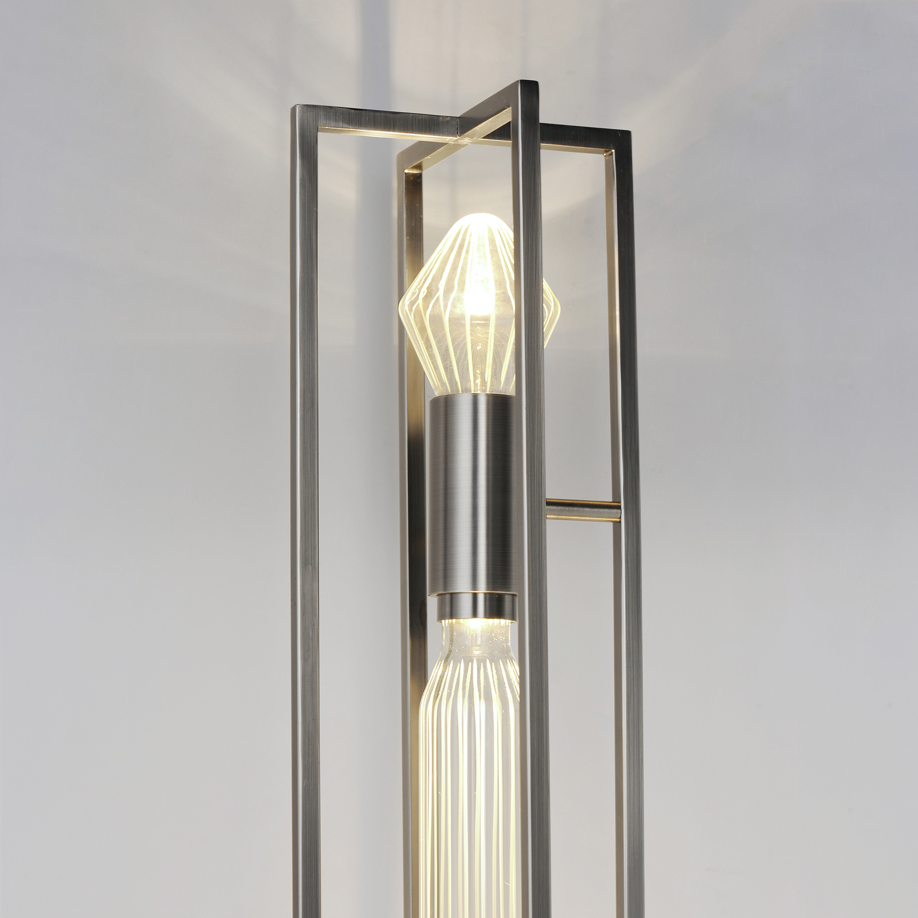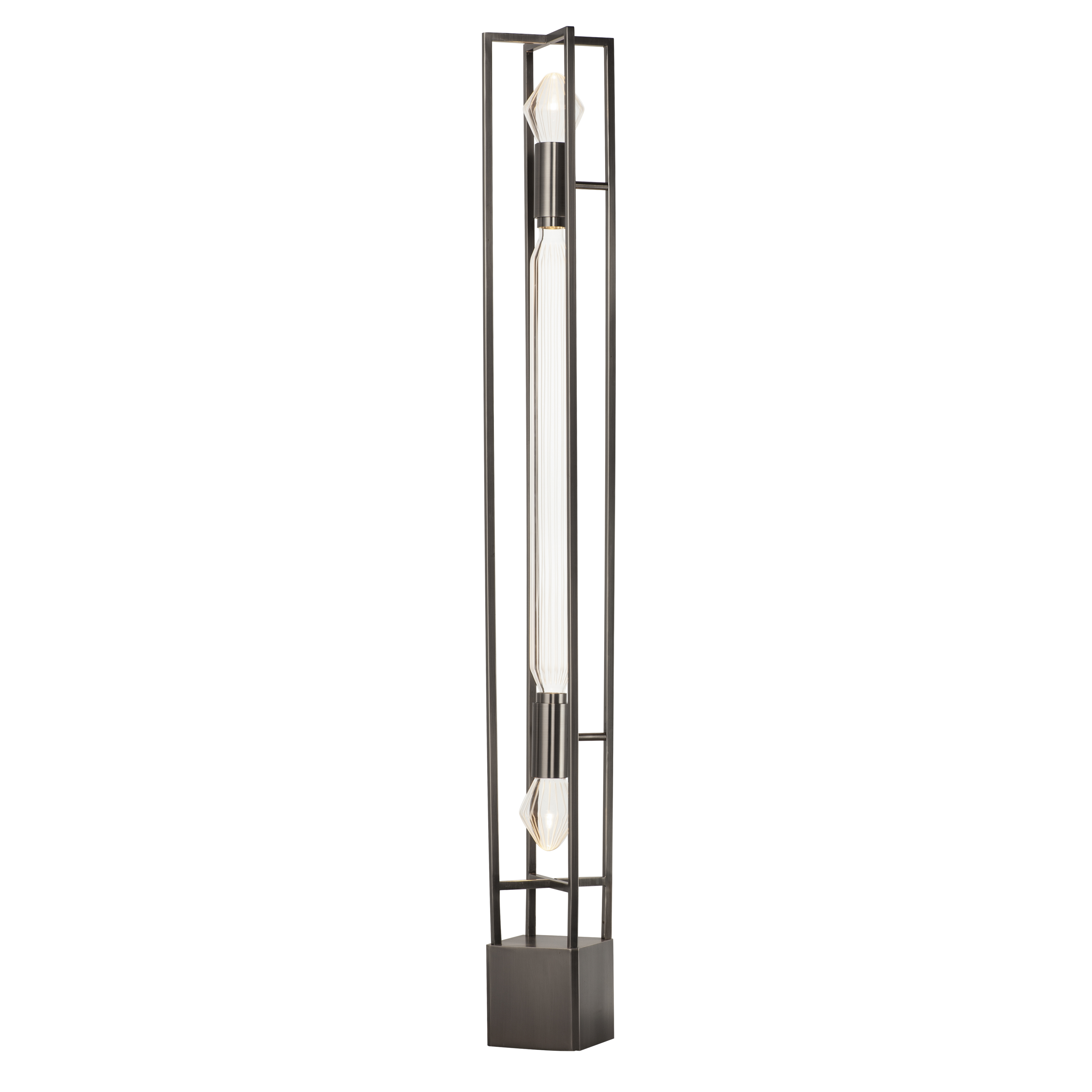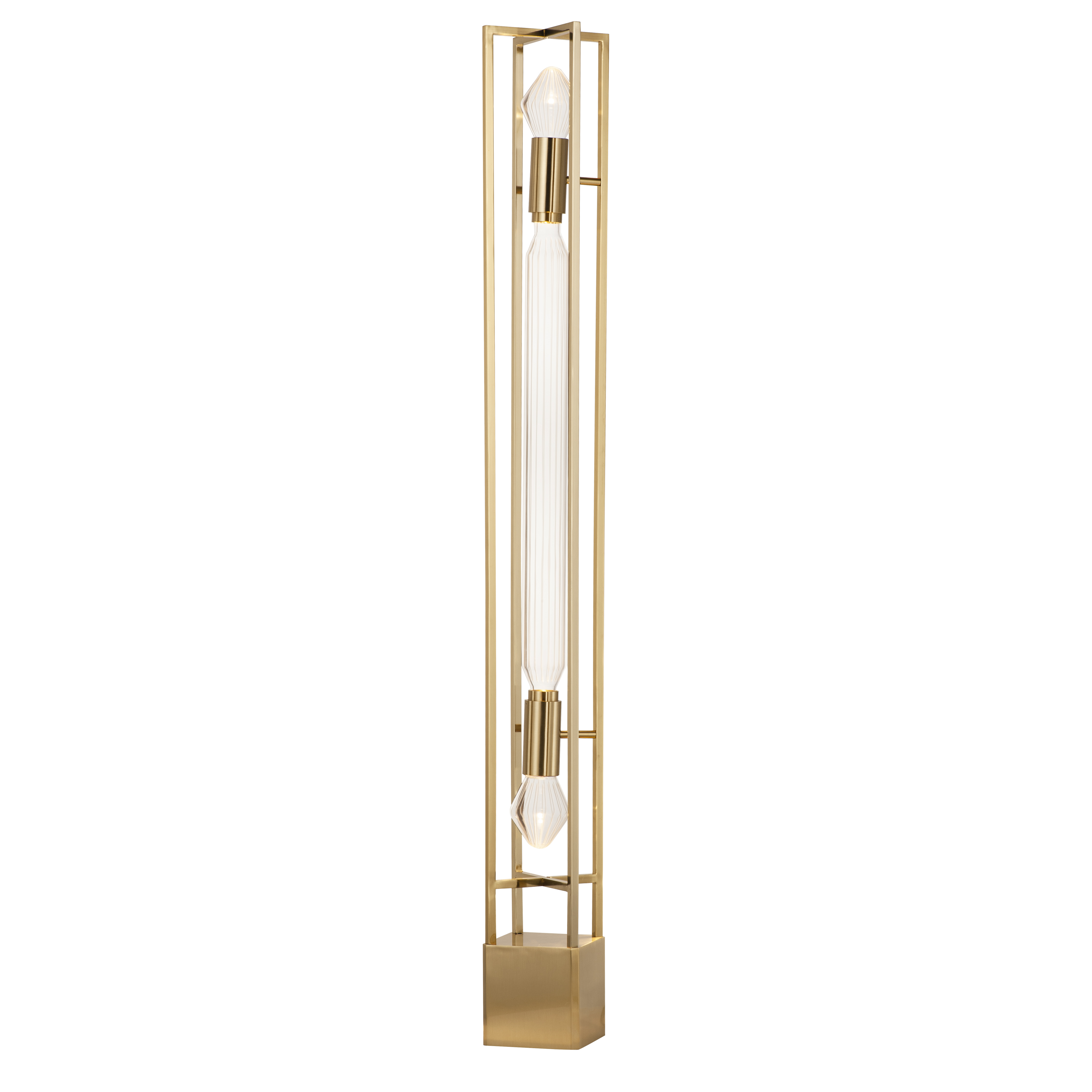 Encased in a brilliantly metallic cage, the Zeppelin showcases airy shapes of precision cut glass with angular details as if illuminated jewelry. The framework cage is finished in either a timeless Heritage Brass or sleek Polished Gunmetal so that this collection complements both modern and traditional settings. Dedicated LED downlights are recessed within the frame to provide additional functional light, while LED lamps are included to highlight the etched details of the suspended glasswork.