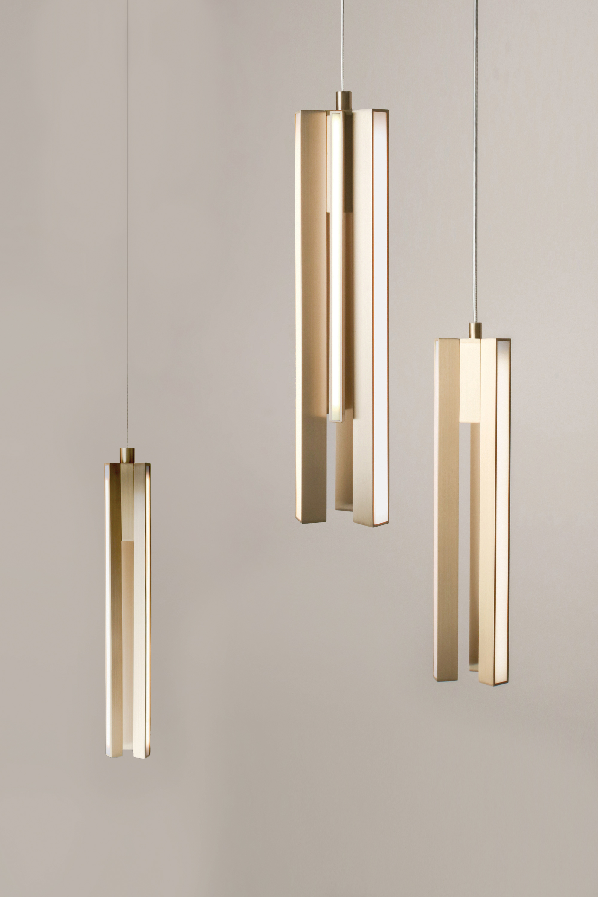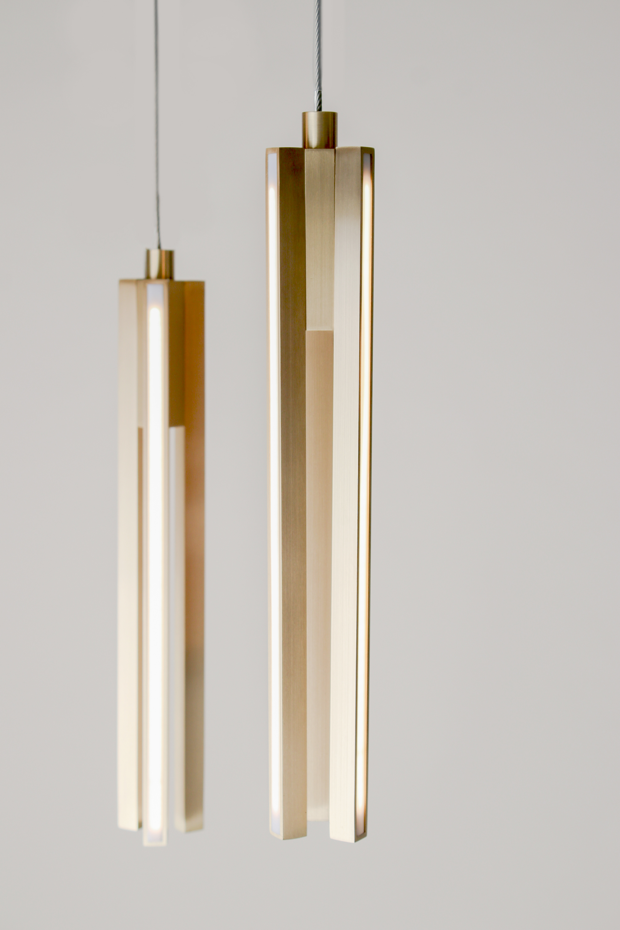 The Lito Series is materially rich, allowing the planes of brass to be generously presented in symphony with the warm glow emitting from within. Captivating from all angles the Lito Series exudes balance, the golden lengths gliding vertically, the interlocked channels creating delicate shadows amidst their folds.