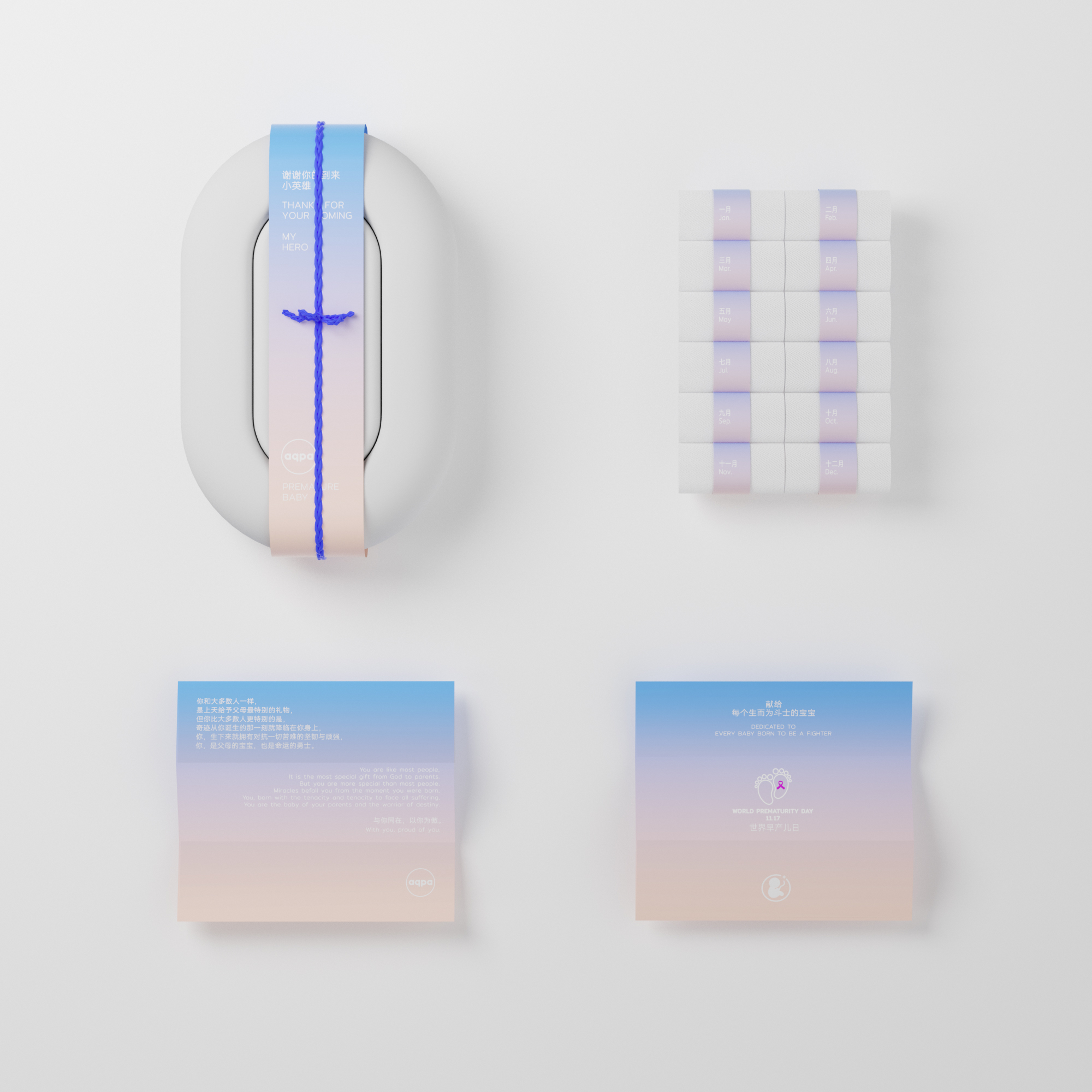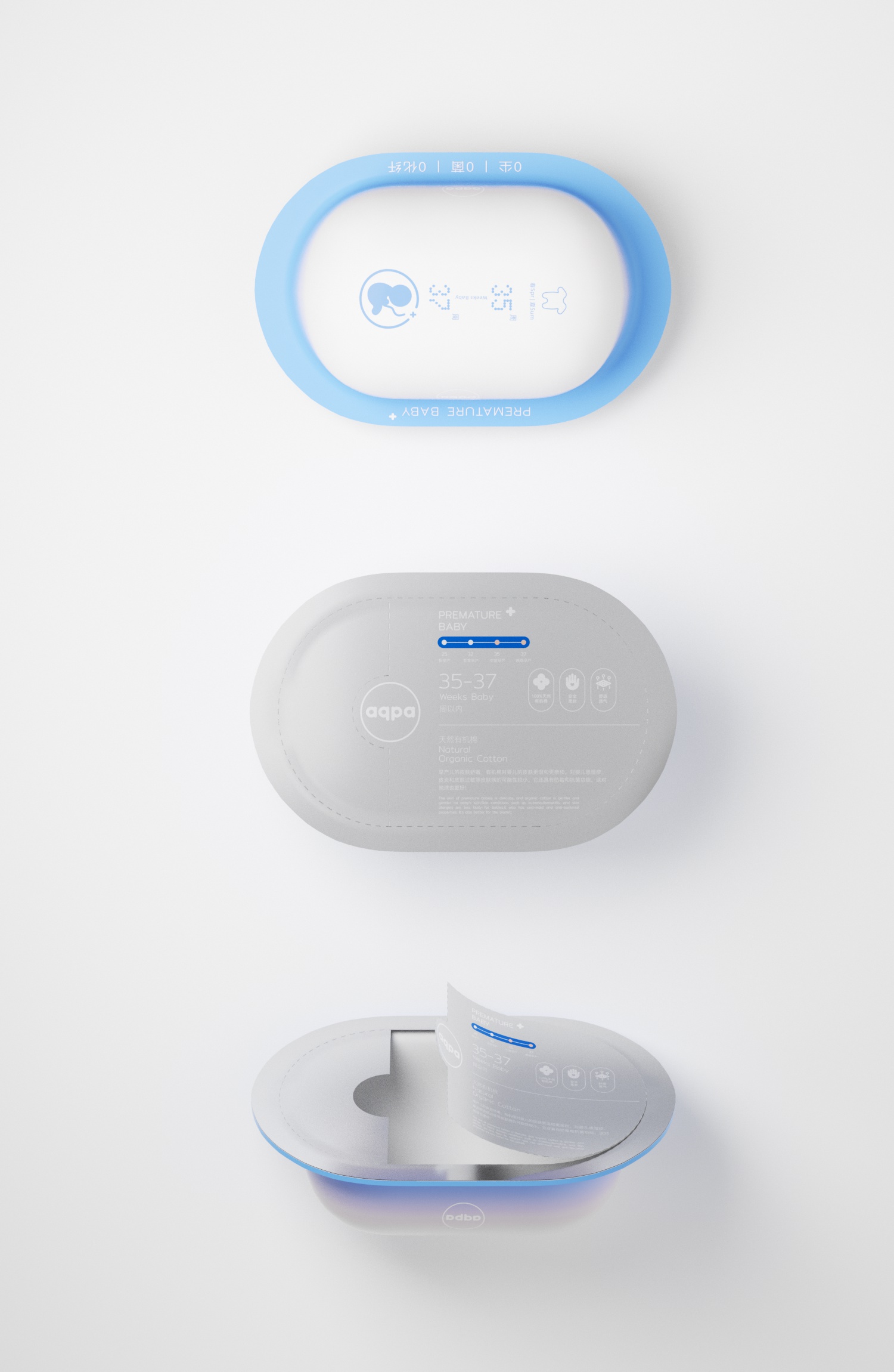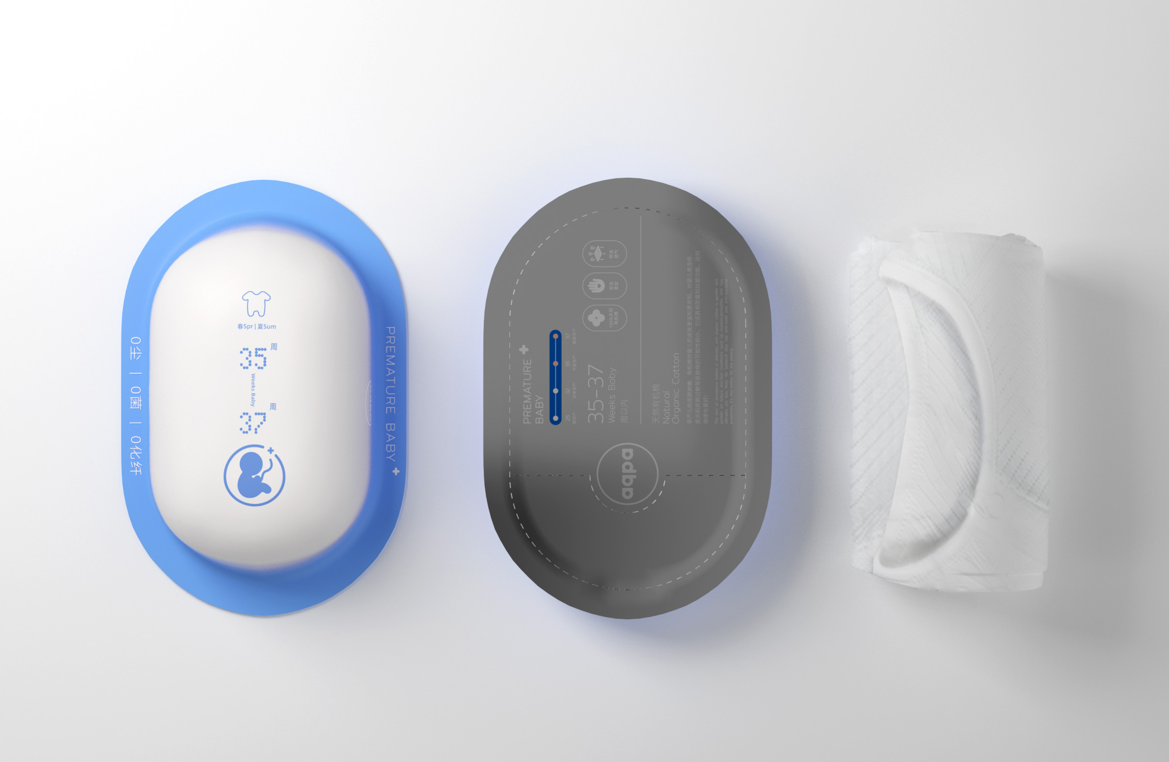 There are more than 15 million premature babies are born every year all over the world, and premature birth is the main cause of mortality within 5 years old. Those babies are born to be fighters because of their sensitive and fragile skin and respiratory system.Aqpa, which has in-depth research on infant products and skin, has particular concerns about the responsibility of providing better and more appropriate protection and care for premature infants.The design of the overall packaging reflects the solution of the products.Such as the form is similar as pill, which means it can protect babies’ skin and is breathable, reflects a profession, rigorous,and academic feeling at the same time.It’s shape and color want to show the humanistic care just like the soft and comfortable feeling in the mother’s pregnant belly.
