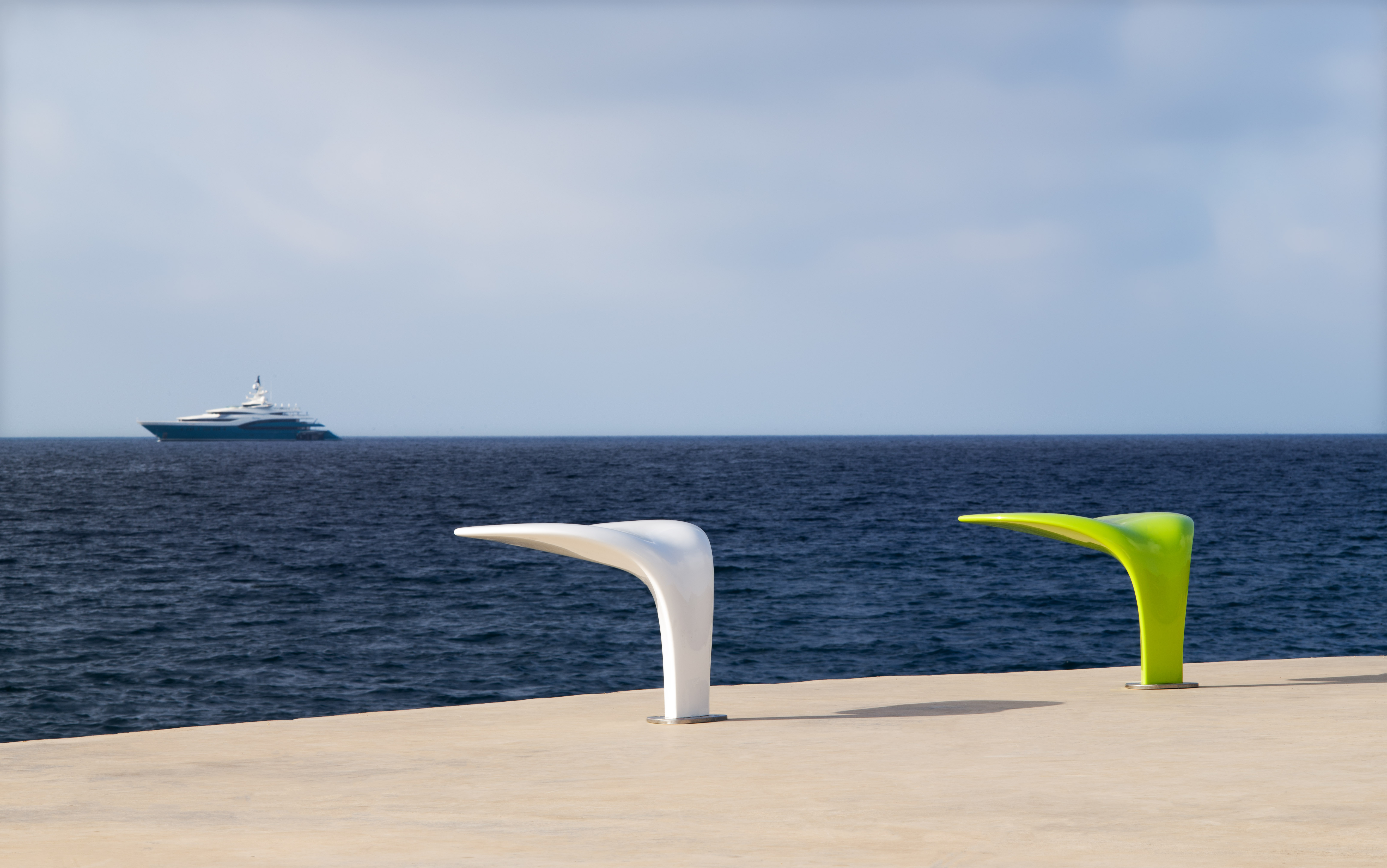 A bench of elegant simplicity with organic shapes that not only fulfils the function of a seat but also provides an aesthetic value when it is placed in the urban space: seafronts, ports, squares, streets and boulevards.