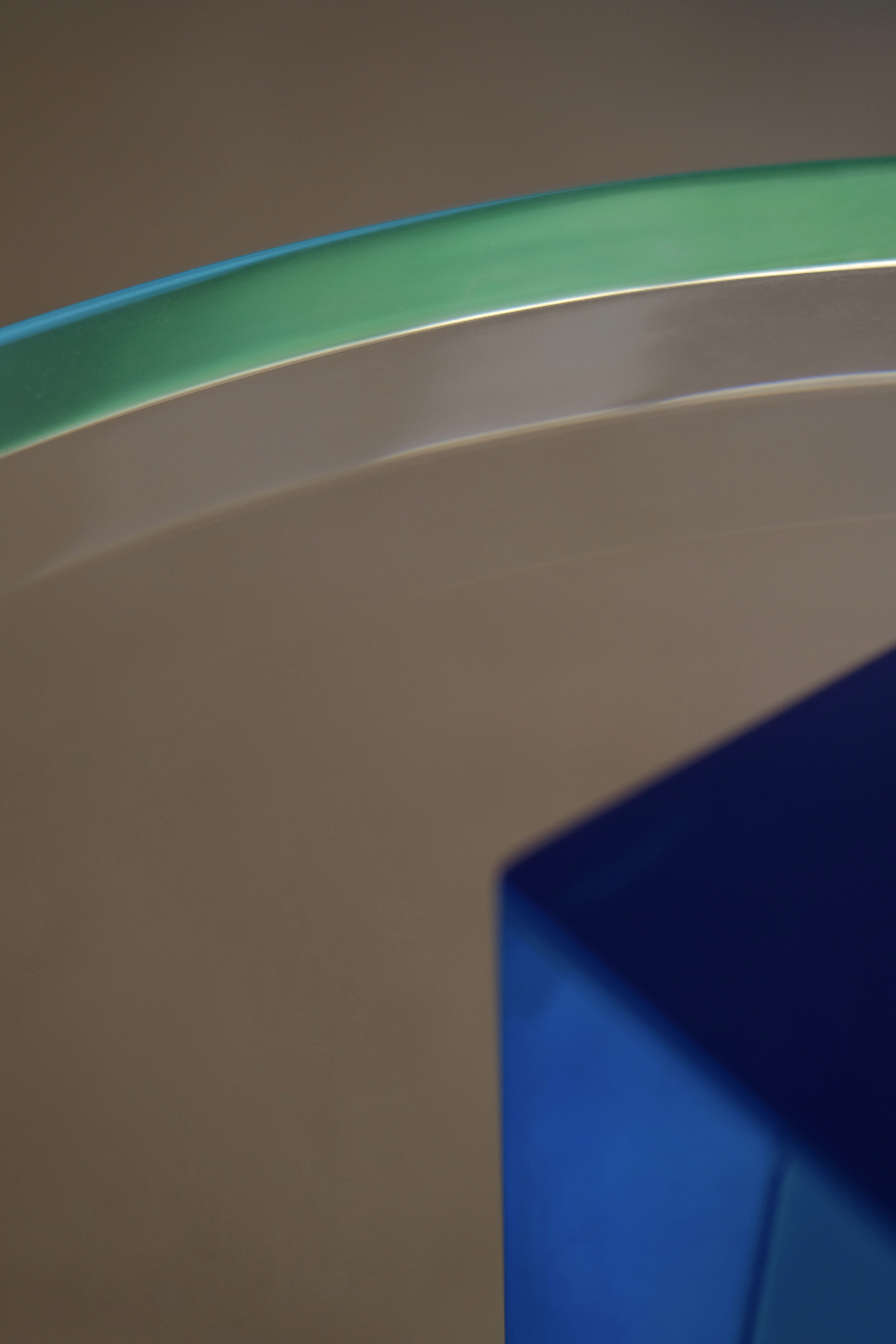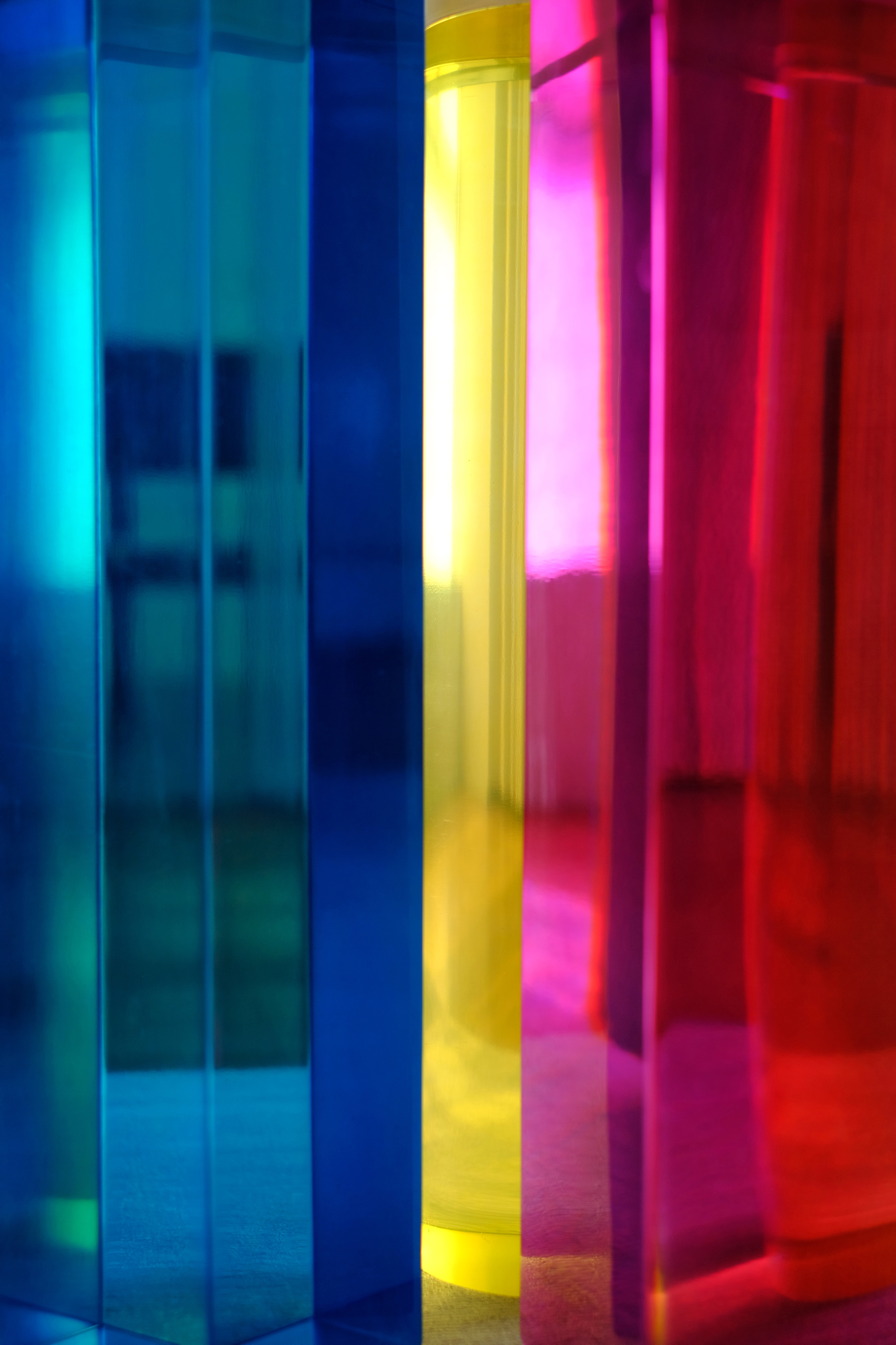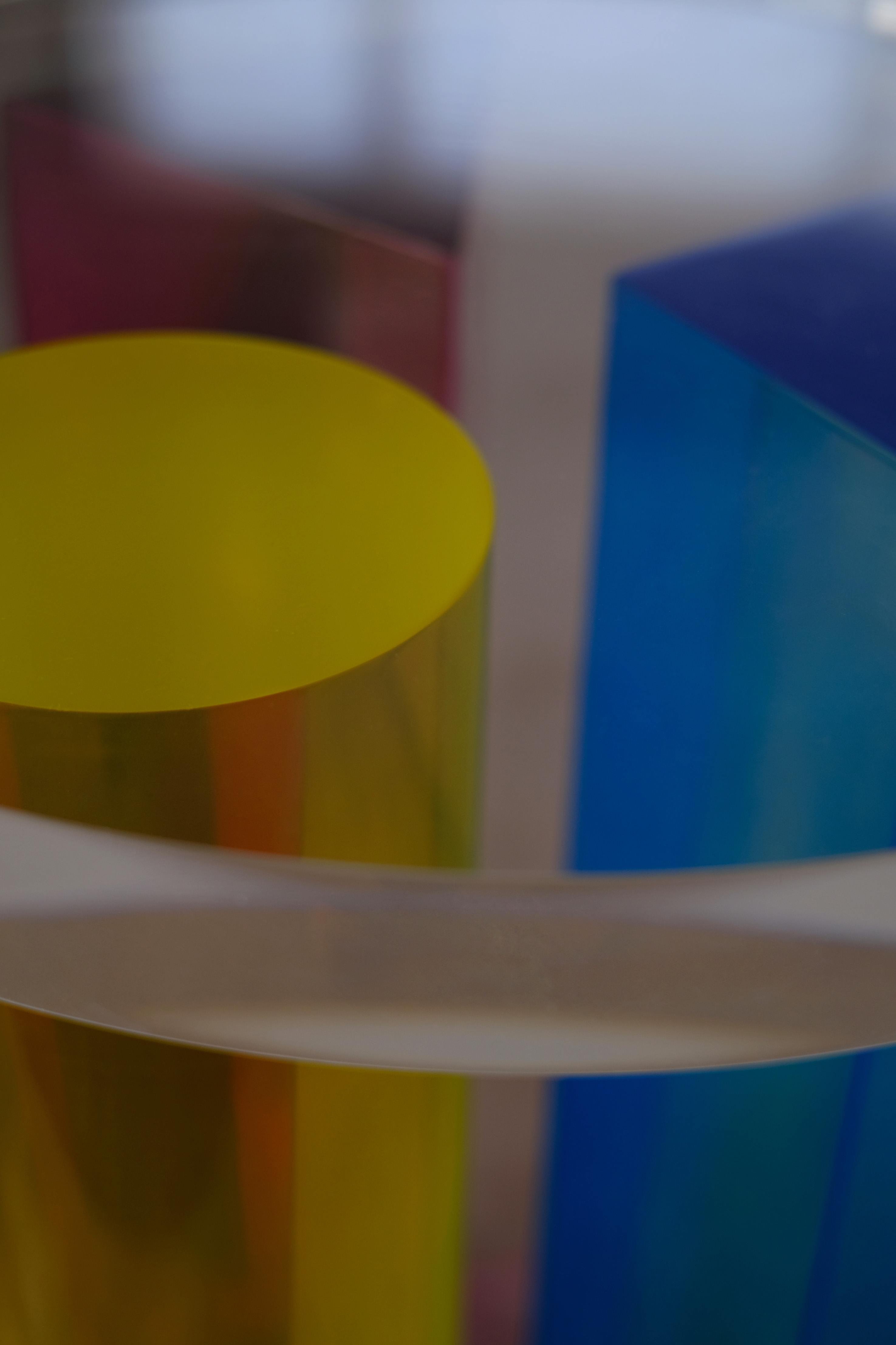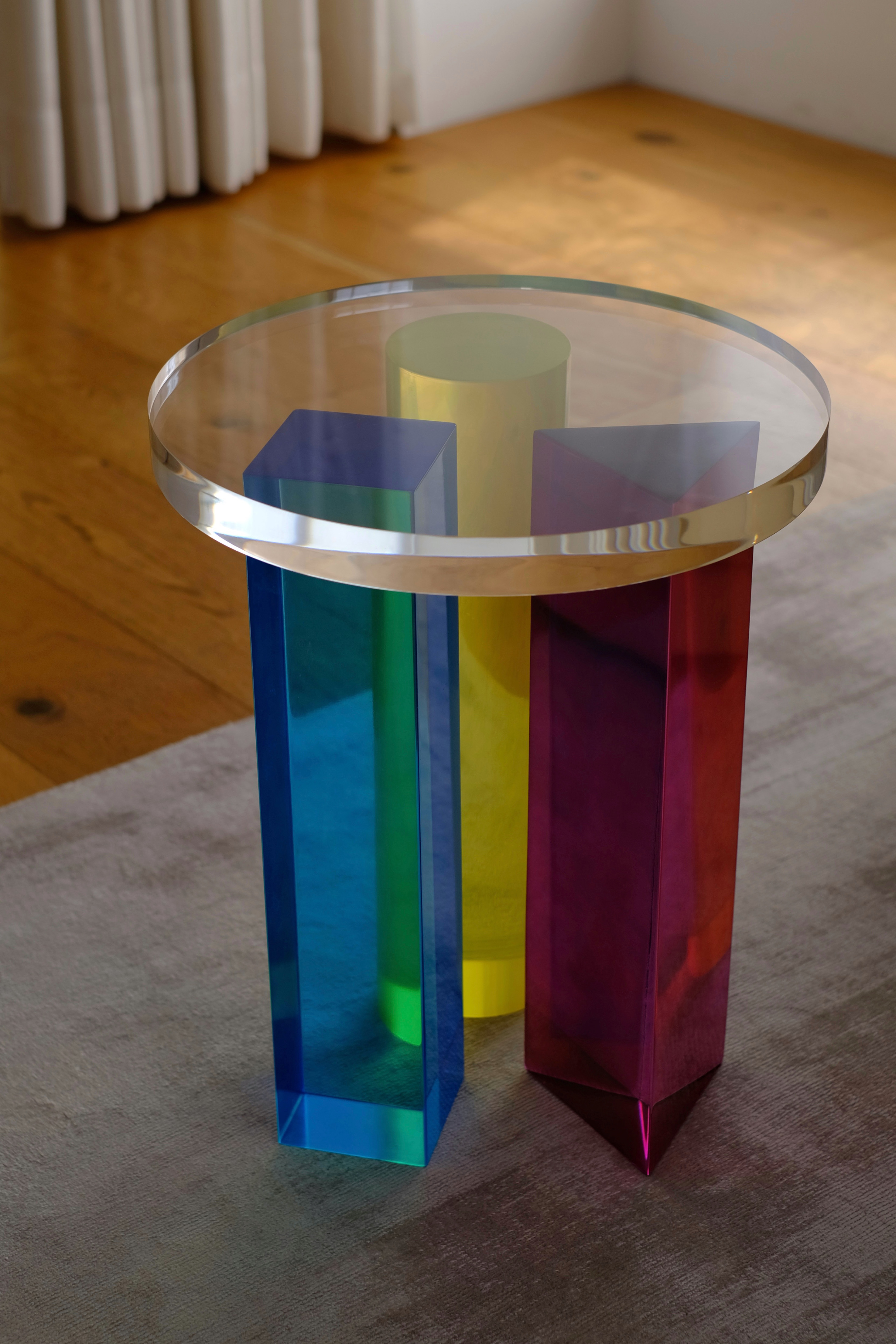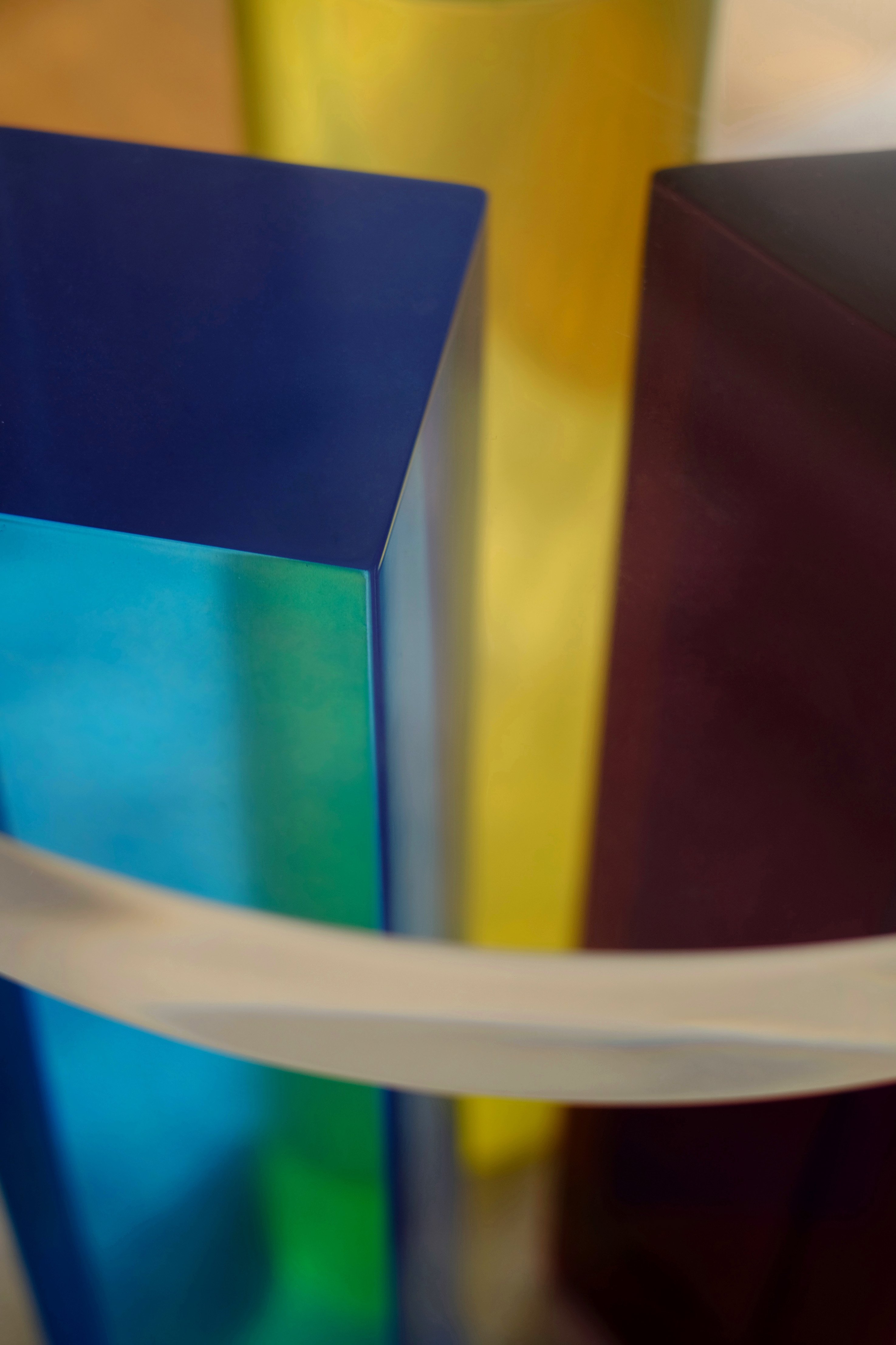 As the name implies, this coffee table is made of three primary colours, and through the translucency of the acrylic material itself, the colours collide and refract with the light when it is transmitted through the product, causing the three primary colours to overlap and change, presenting different colour variations. The table measures 400mm X 400mm X 480mm and is made of acrylic. With the different colours of each table leg, it gives a different visual experience of colour when the product is viewed from different perspectives, due to the different layers of superimposition and the different refractive surfaces.