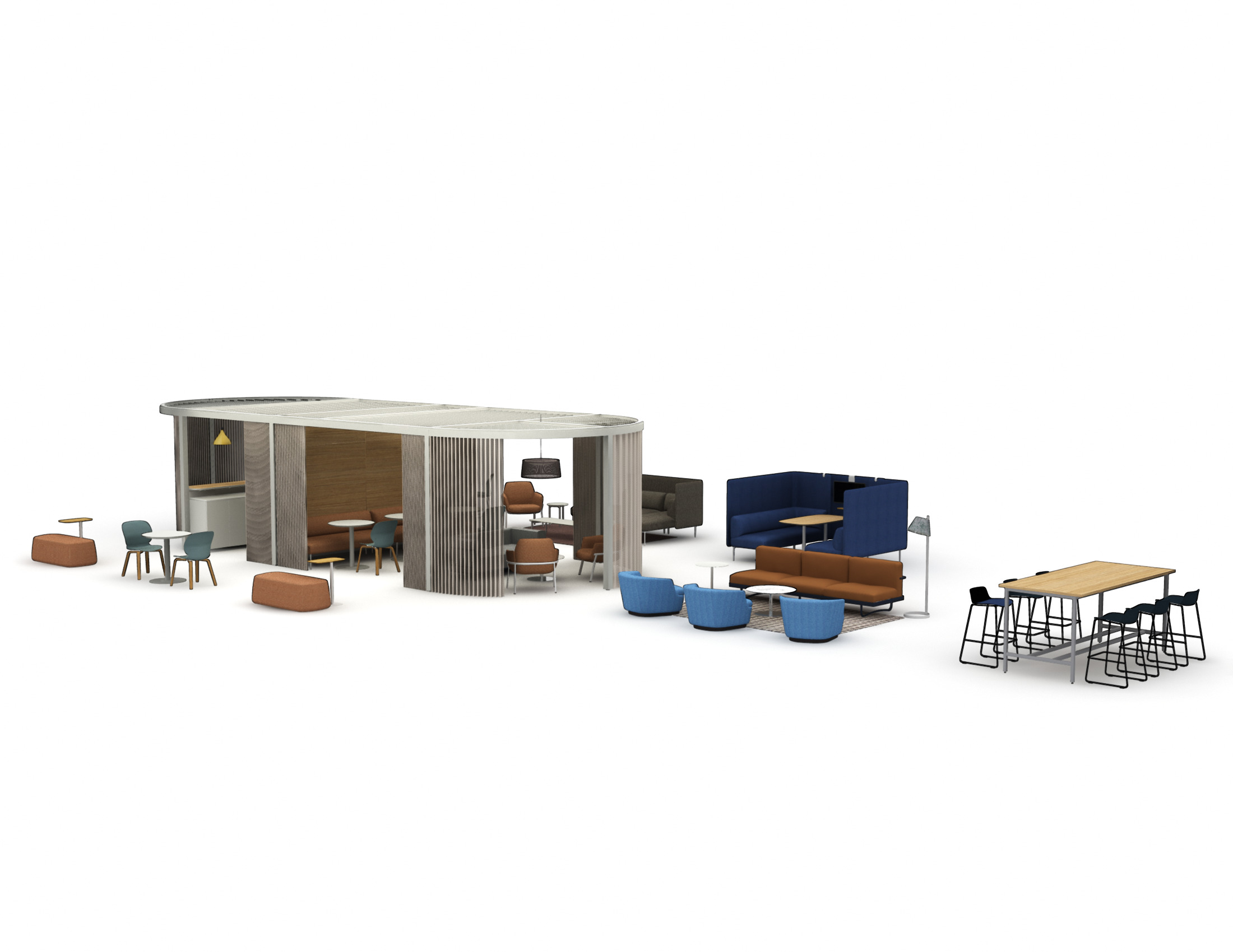 Customers want to create spaces for people to work outside of an assigned location, but still allow work amongst teams. Designers are solving for this emerging trend with destination spaces away from the open plan setting. Haworth’s Pergola helps delineate these spaces for individuals and teams to focus and collaborate.