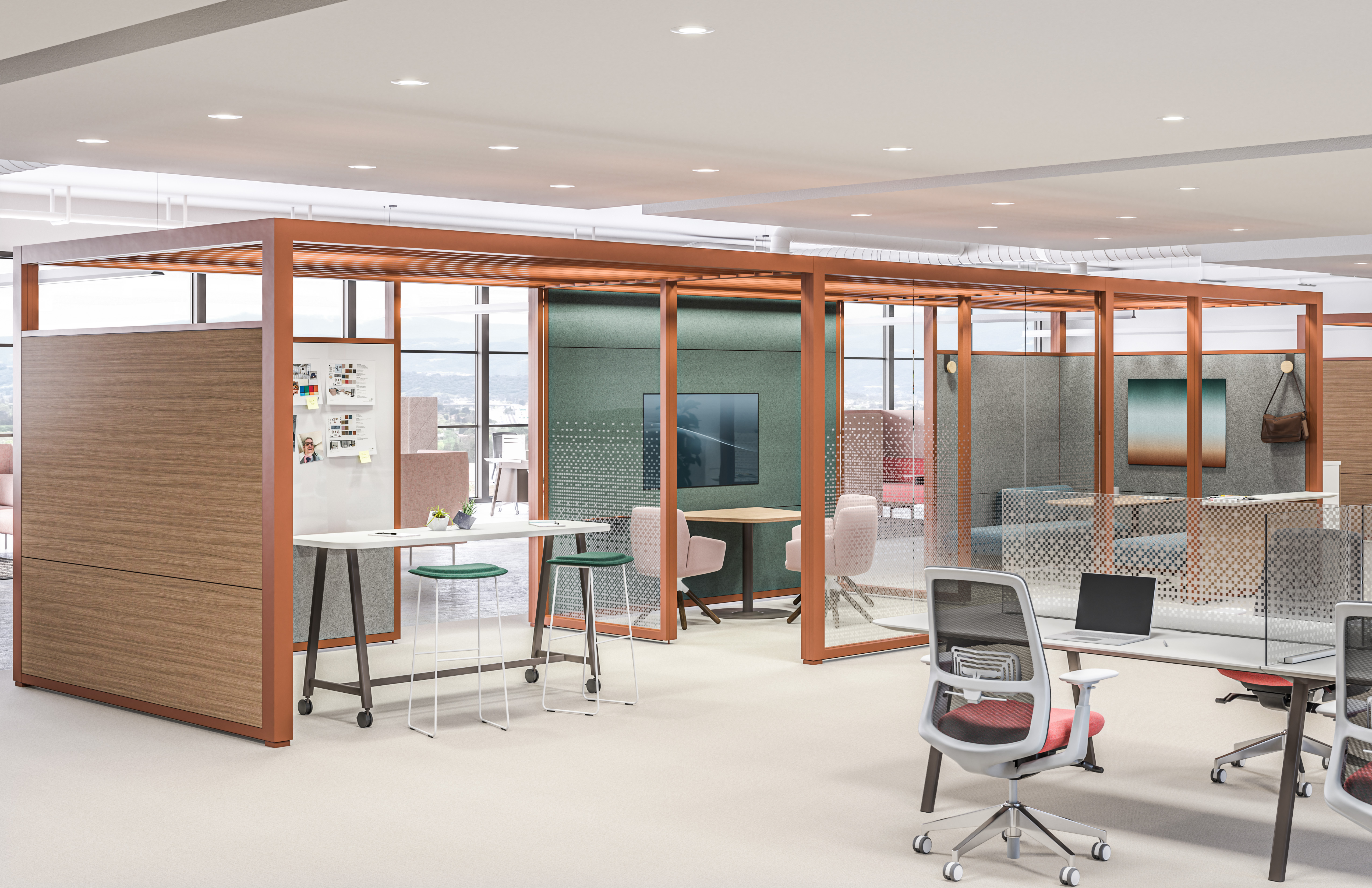 From materials to modularity and size options, Pergola offers the customization desired in today’s workspaces. It lets you leverage real estate in new ways to build spaces quickly, empowering employees to choose how to work at the office. Flexible yet functional destinations with vertical surfaces and space division offer a sense of privacy so people can claim control, reduce stress and optimize performance.