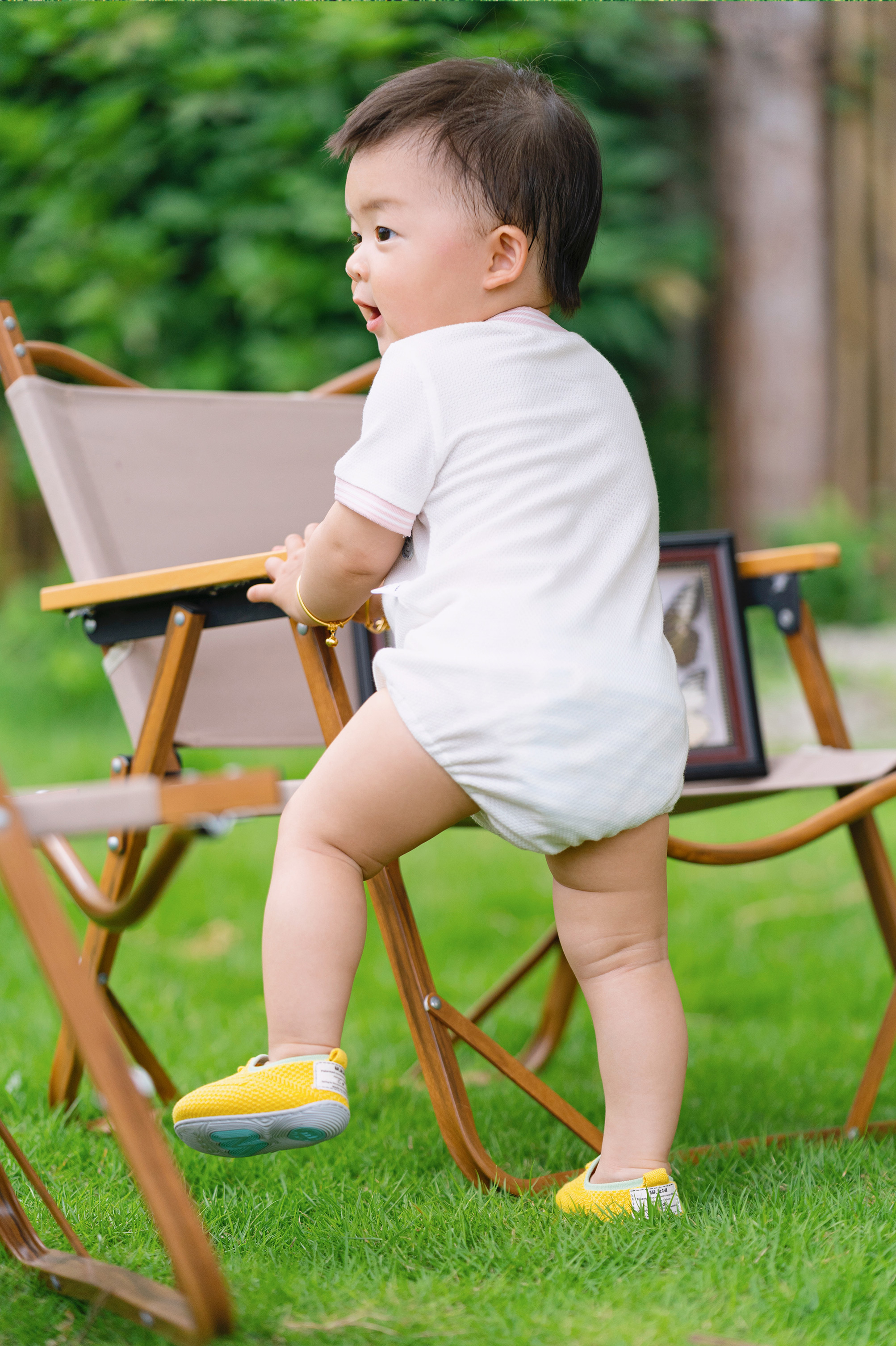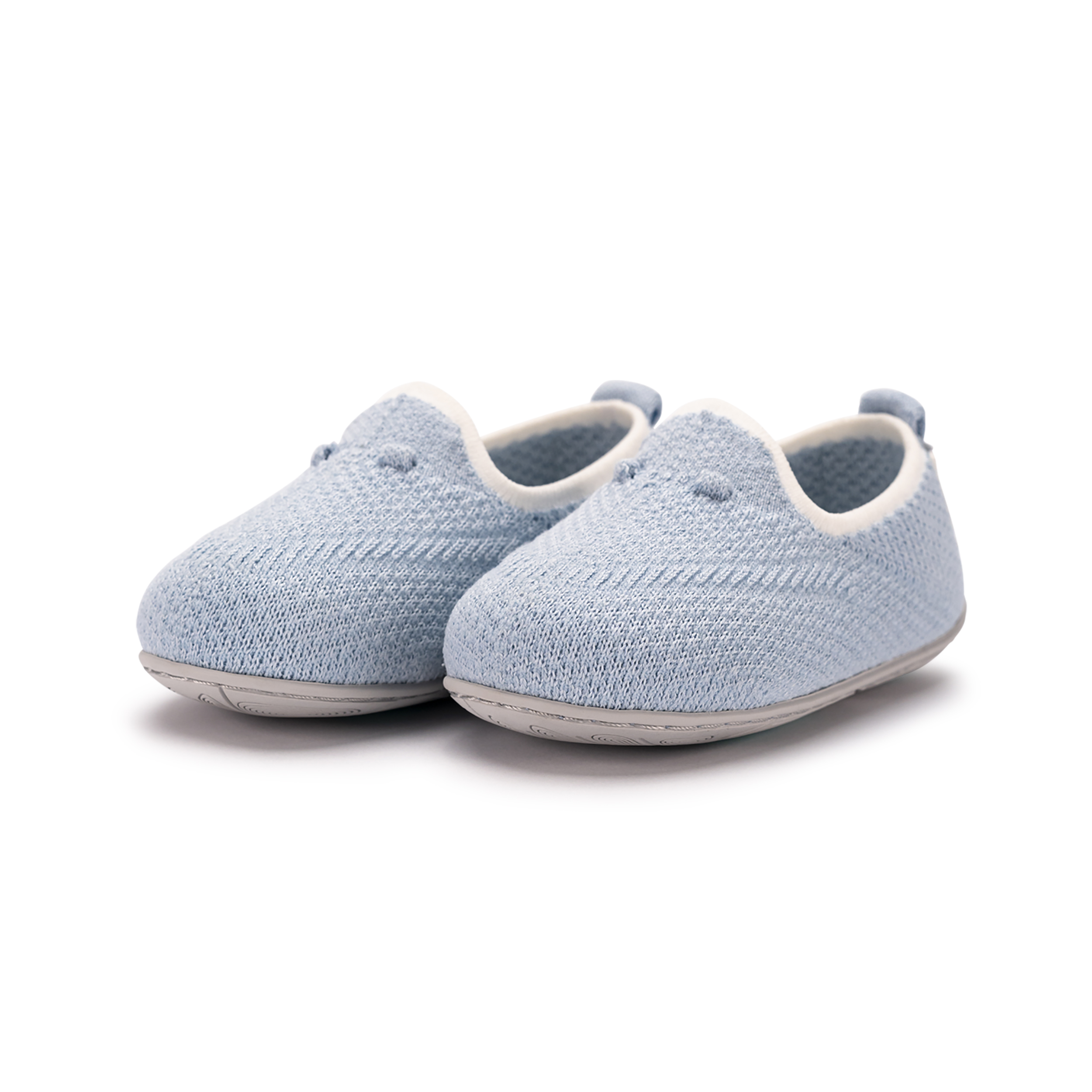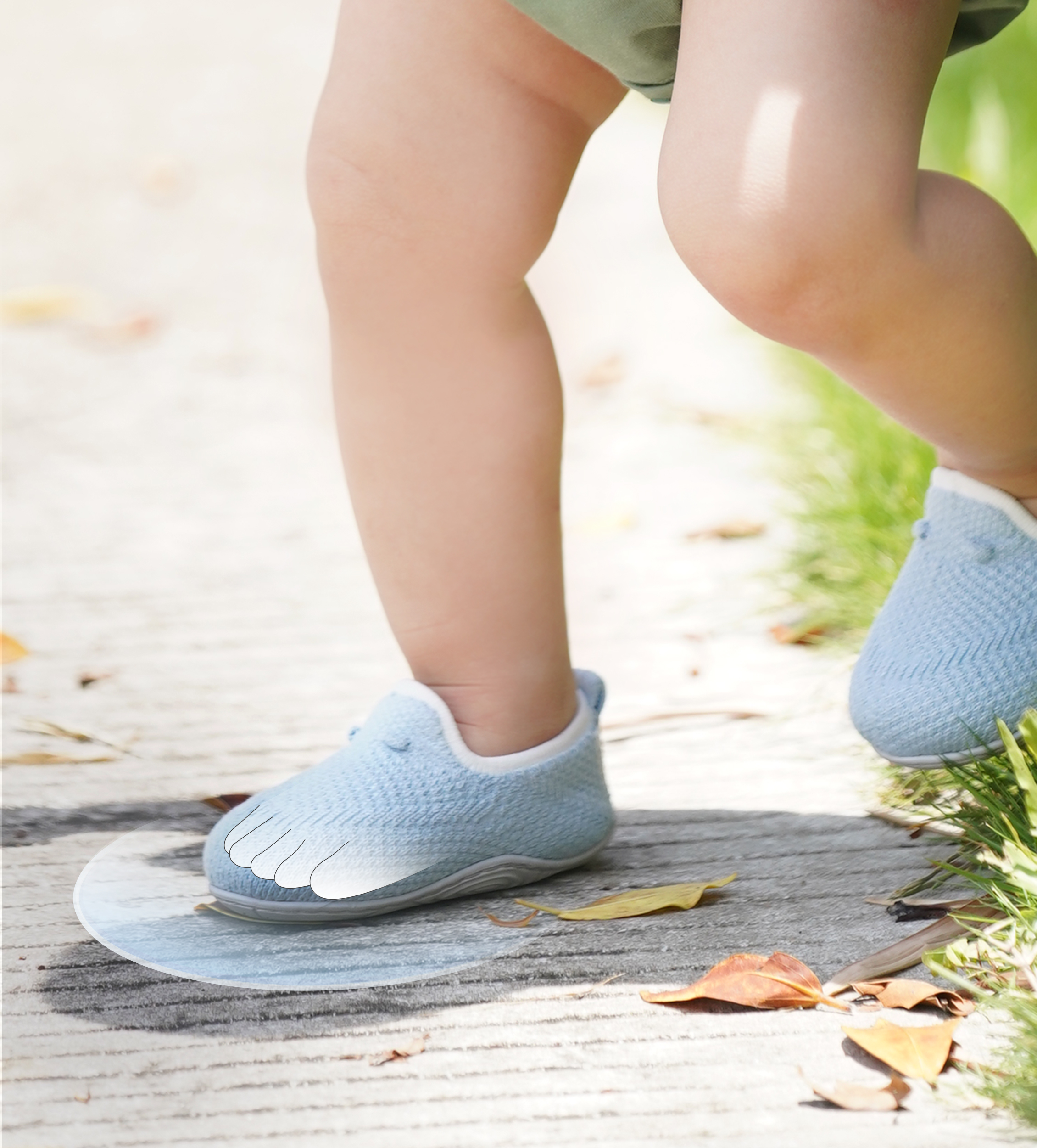 W-kid Sensory Shoes target specifically at children aged 0.5 to 1.5 years which is a critical period of body growth for toddlers. And their feet are growing fasting among all body parts. So we developed these shoes based on their feet growth pattern and aesthetic system and took the comfort of wearing and cultivating good gaits into consideration to guide their healthy growth. And the entire shoe is weaved by a single cotton thread compared with the traditional hook & loop fastening shoes. The show surface is made up of 100% combed cotton, up by 75% compared with traditional ones. With the W-Kid 4th generation capsule technique, the shoe has a single layer without any glue being used. No overlapping reduces feet rubbing and secures babies’ tender skin. The bionic insole stimulates the nerves of the baby's feet by mimicking different textures of the road, which is conducive to neuron development, and encouraging balance, strength and coordination. The wider shoe front is more comfortable and the shoes are suitable for babies either with fat or thin feet. And since there are plenty of room for the toes to grasp the land flexibly, the shoes can train the insole muscle and stimulate the skeletal muscle growth, thus improving the flexibility of the ankle and the support of the insole ligament. The sole has a modular structure that can support different foot parts properly as the hardness varies. Such a design can protect the foot bone, ensure a more natural fit and balance foot pressure to encourage walking coordination. Equipped with a unique balanced semi-insert at the heel, toddlers can walk more stably.