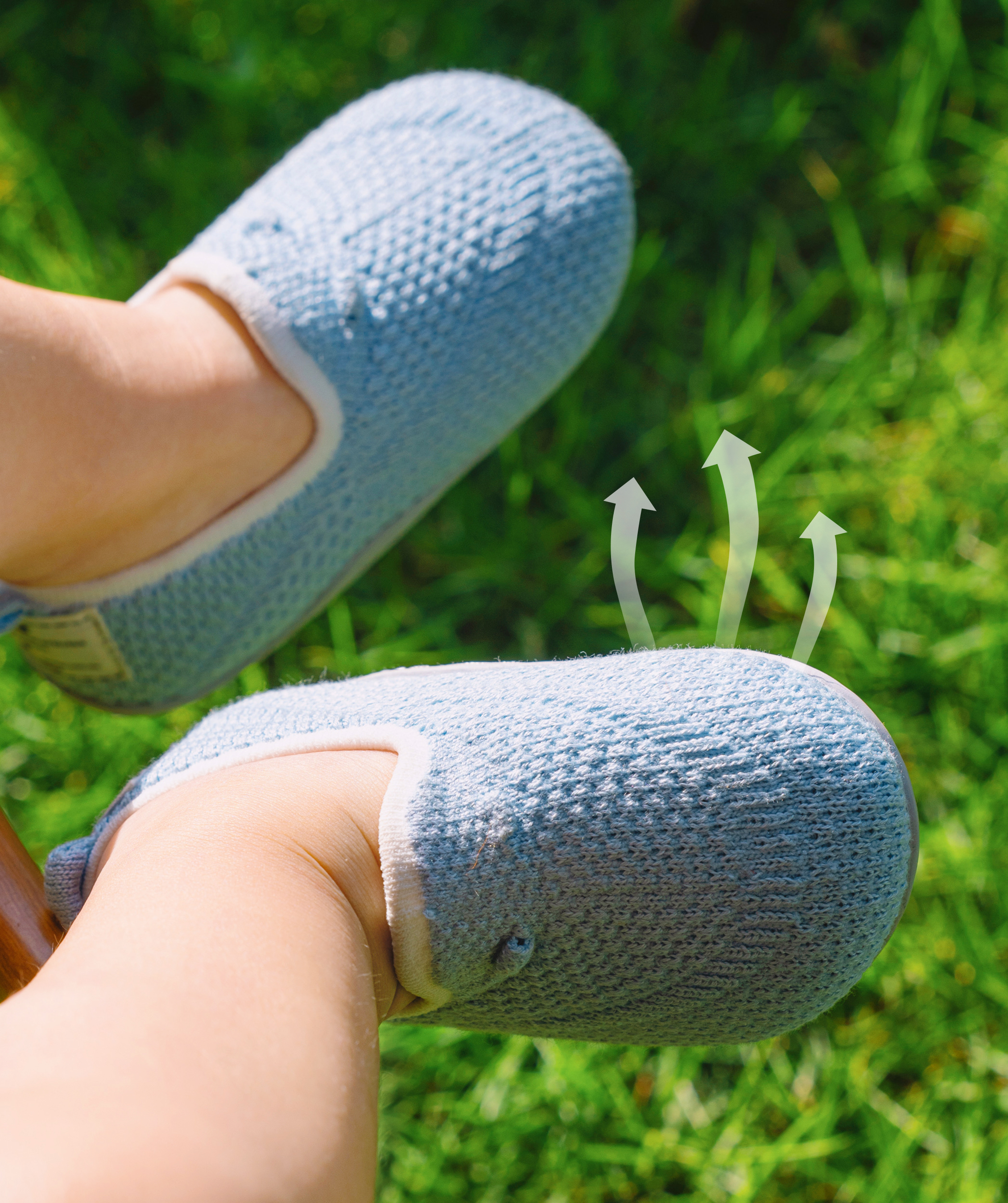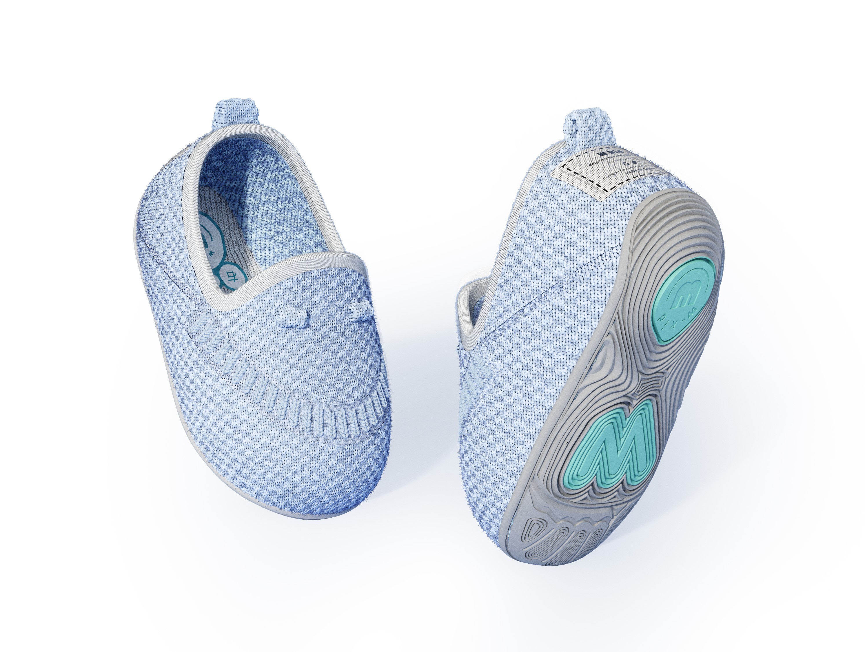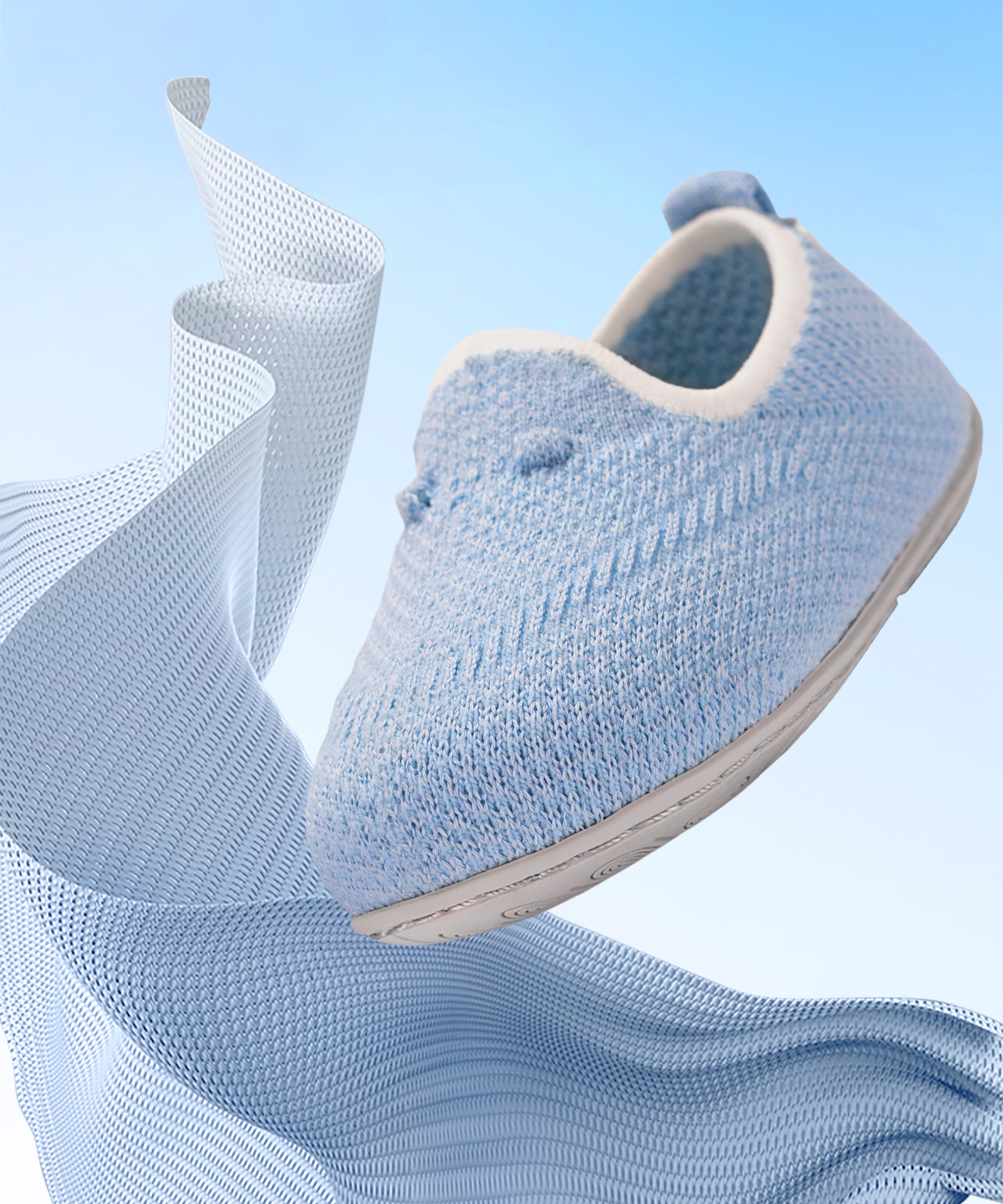W-kid Sensory Shoes target specifically at children aged 0.5 to 1.5 years which is a critical period of body growth for toddlers. And their feet are growing fasting among all body parts. So we developed these shoes based on their feet growth pattern and aesthetic system and took the comfort of wearing and cultivating good gaits into consideration to guide their healthy growth. And the entire shoe is weaved by a single cotton thread compared with the traditional hook & loop fastening shoes. The show surface is made up of 100% combed cotton, up by 75% compared with traditional ones. With the W-Kid 4th generation capsule technique, the shoe has a single layer without any glue being used. No overlapping reduces feet rubbing and secures babies’ tender skin. The bionic insole stimulates the nerves of the baby's feet by mimicking different textures of the road, which is conducive to neuron development, and encouraging balance, strength and coordination. The wider shoe front is more comfortable and the shoes are suitable for babies either with fat or thin feet. And since there are plenty of room for the toes to grasp the land flexibly, the shoes can train the insole muscle and stimulate the skeletal muscle growth, thus improving the flexibility of the ankle and the support of the insole ligament. The sole has a modular structure that can support different foot parts properly as the hardness varies. Such a design can protect the foot bone, ensure a more natural fit and balance foot pressure to encourage walking coordination. Equipped with a unique balanced semi-insert at the heel, toddlers can walk more stably.
