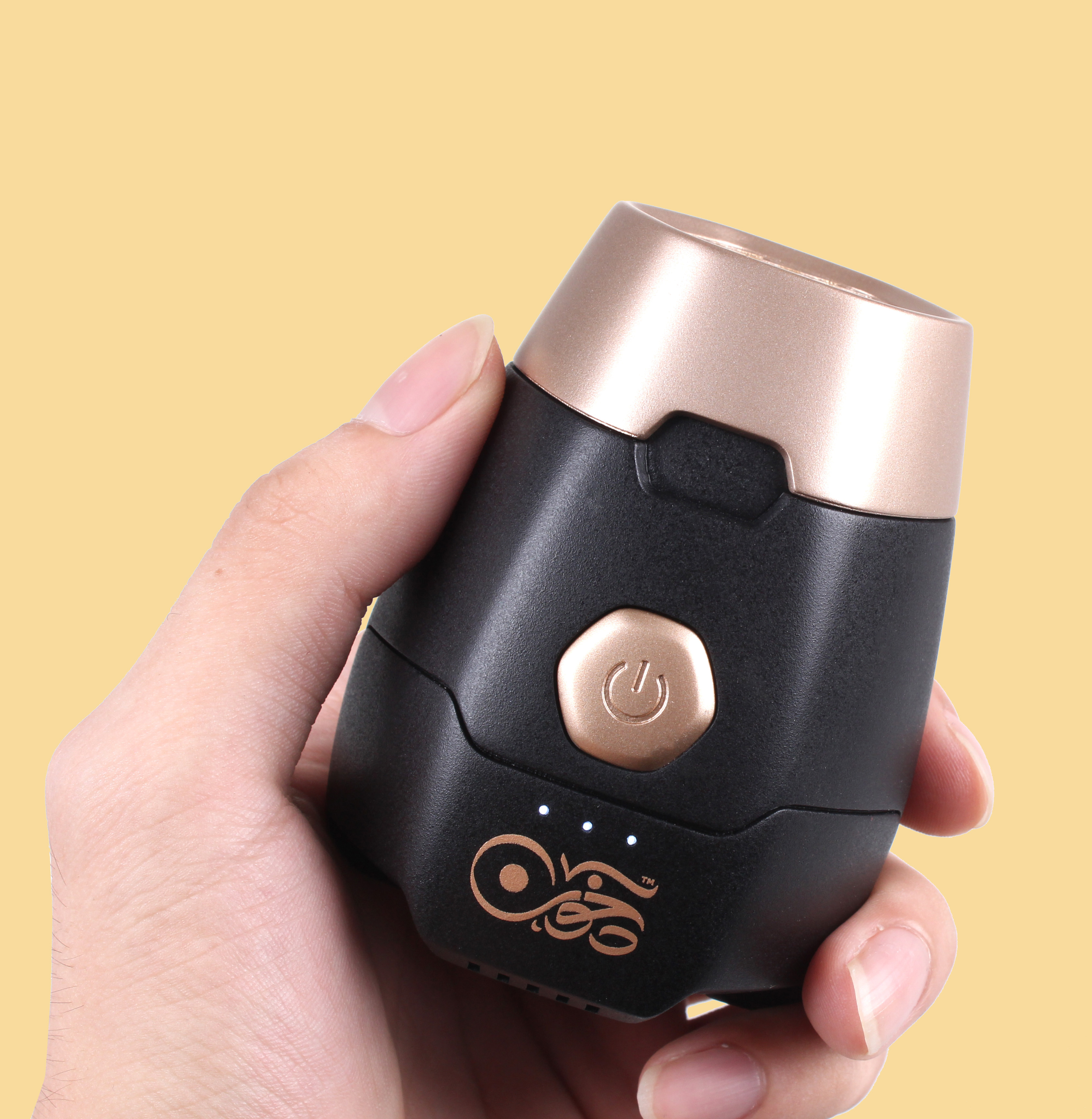 In order to create a scent or perfume, simply place agarwood or another scented wood into the heating chambre. Double-click the power button. And that’s it. The scented smoke will come out within seconds. Direct it towards your hair, or clothes, or leave it standing on the table.