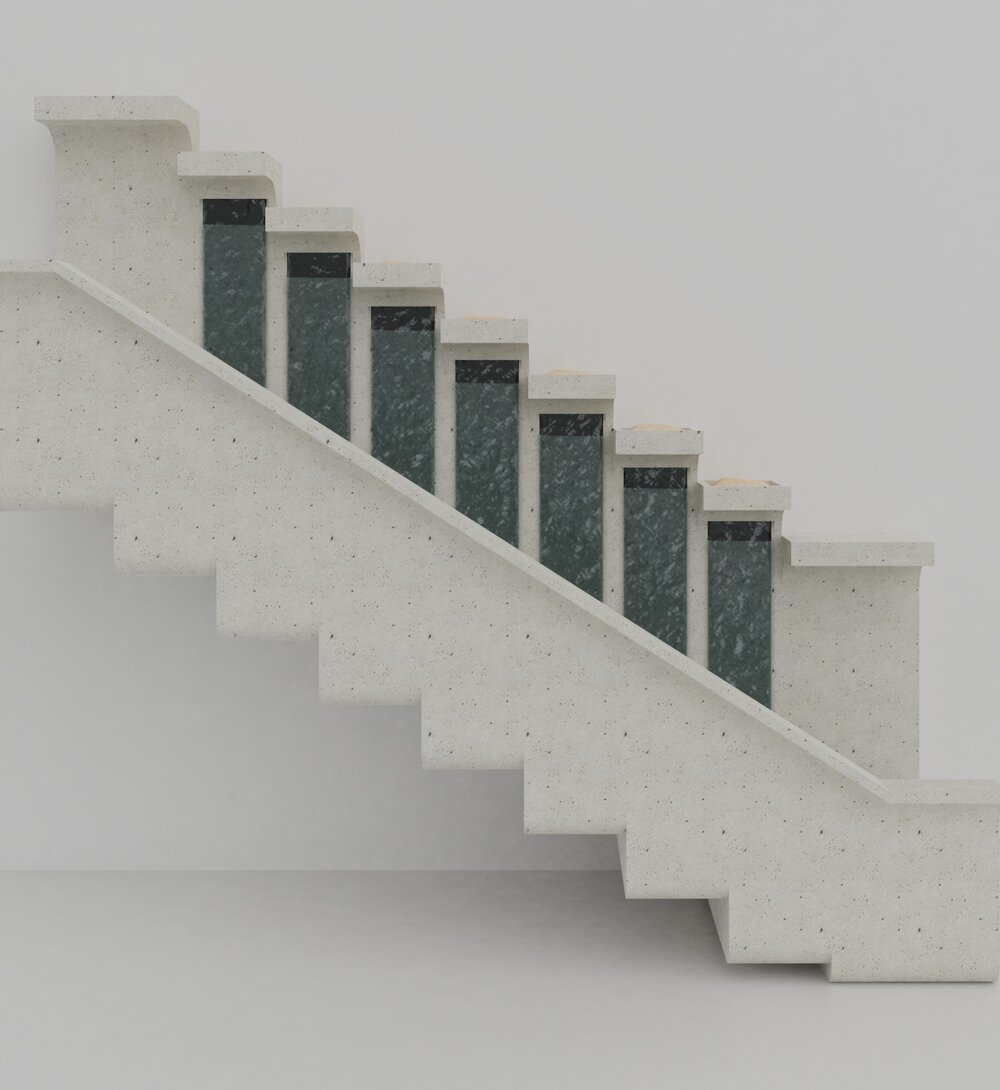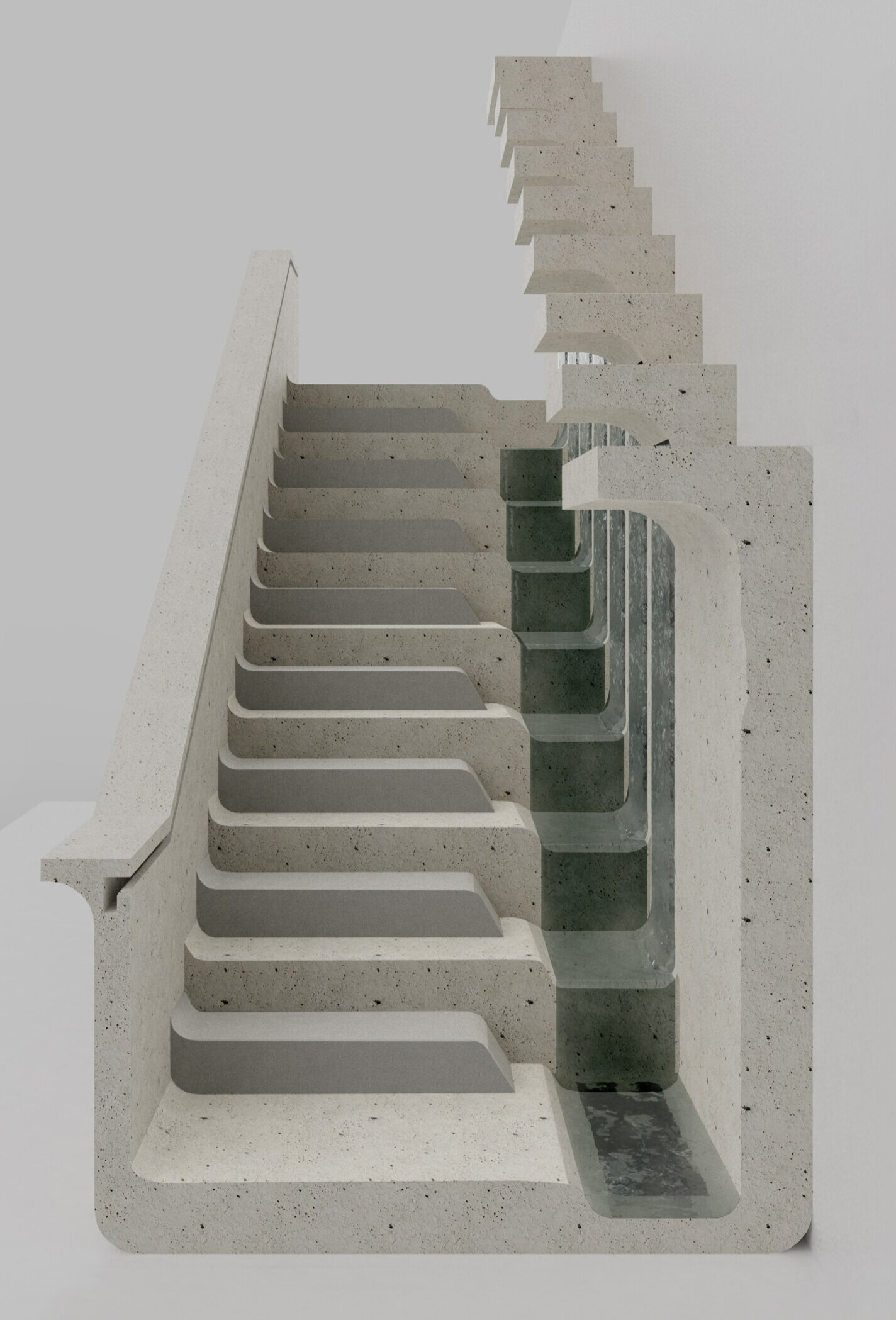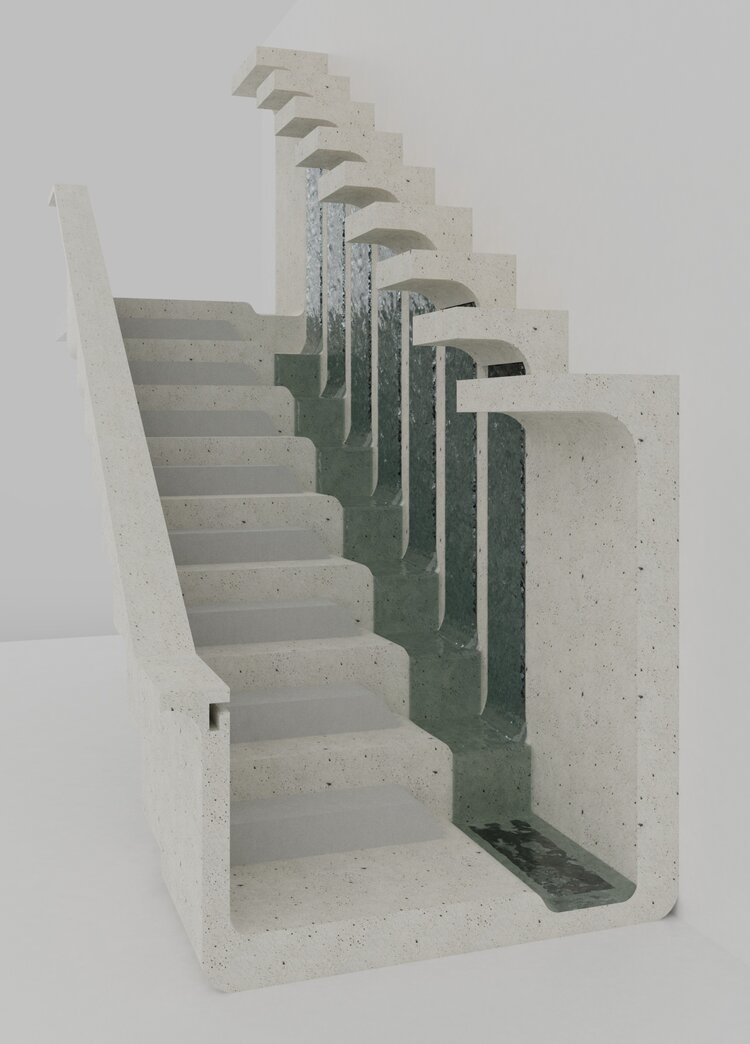 The staircase design, Karst, is named from the Karst terrain, which is famous for solutional caves.