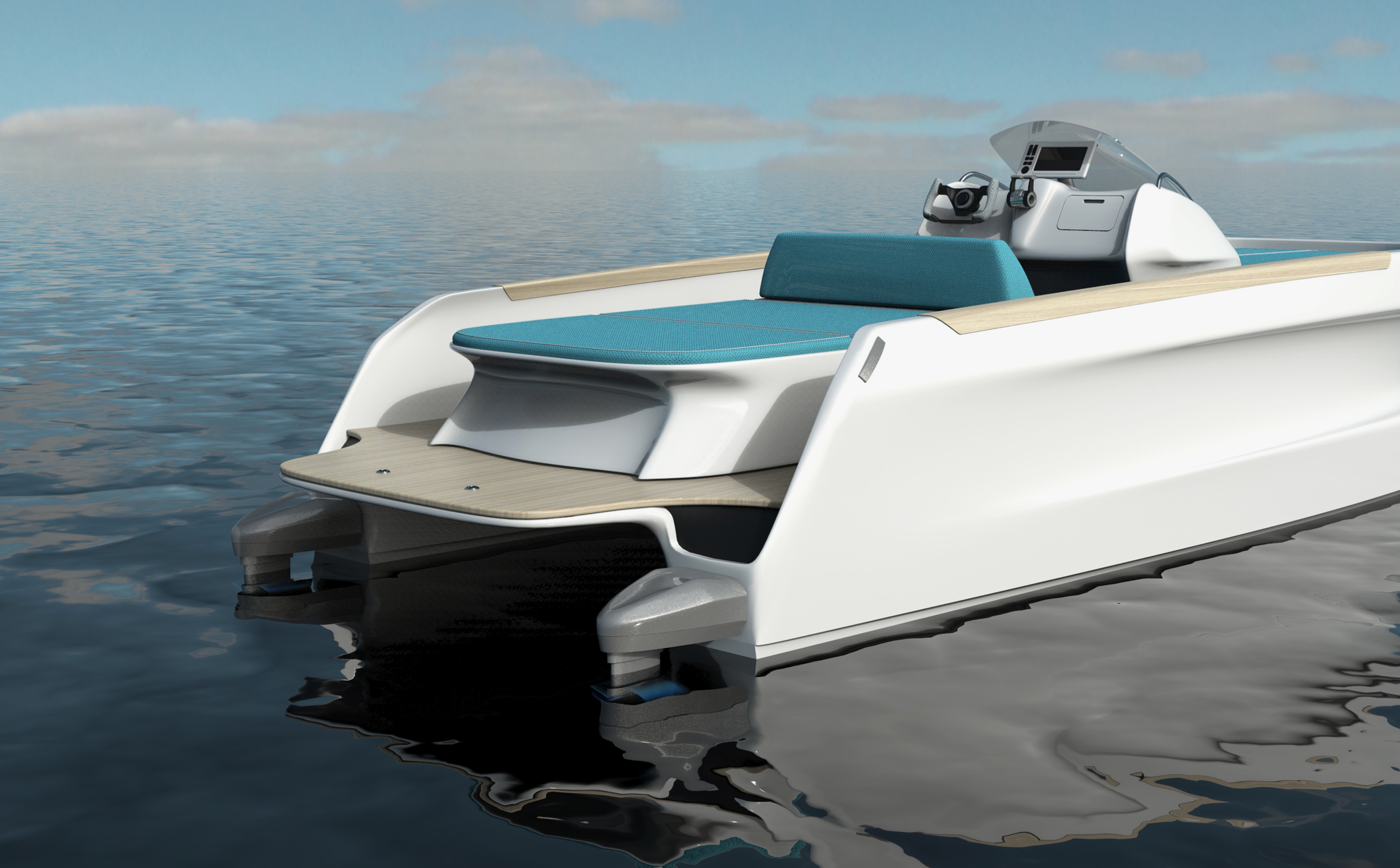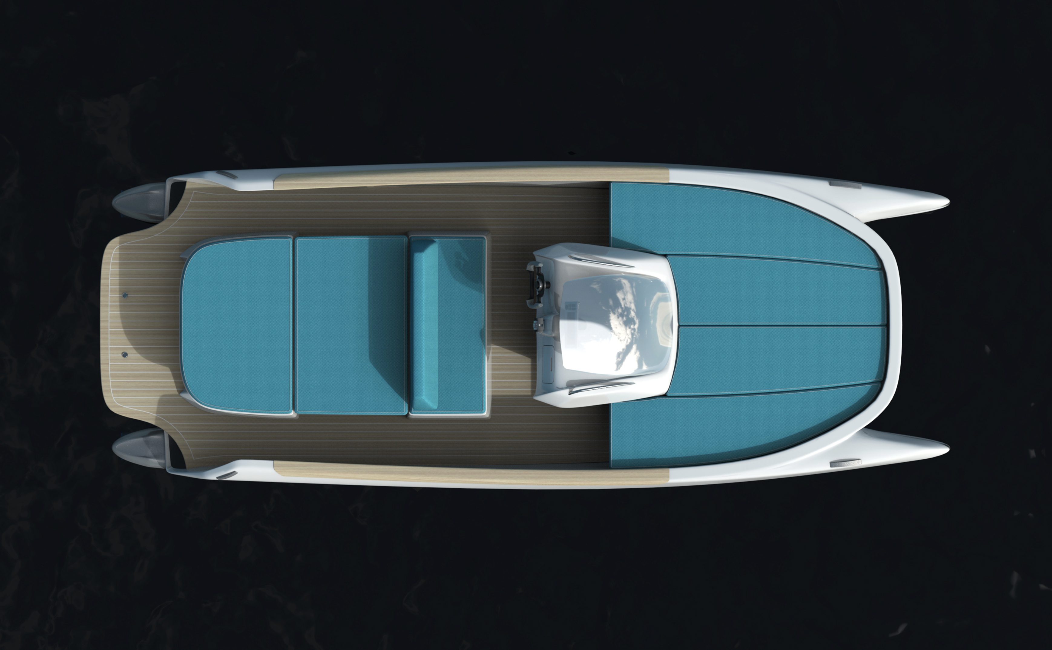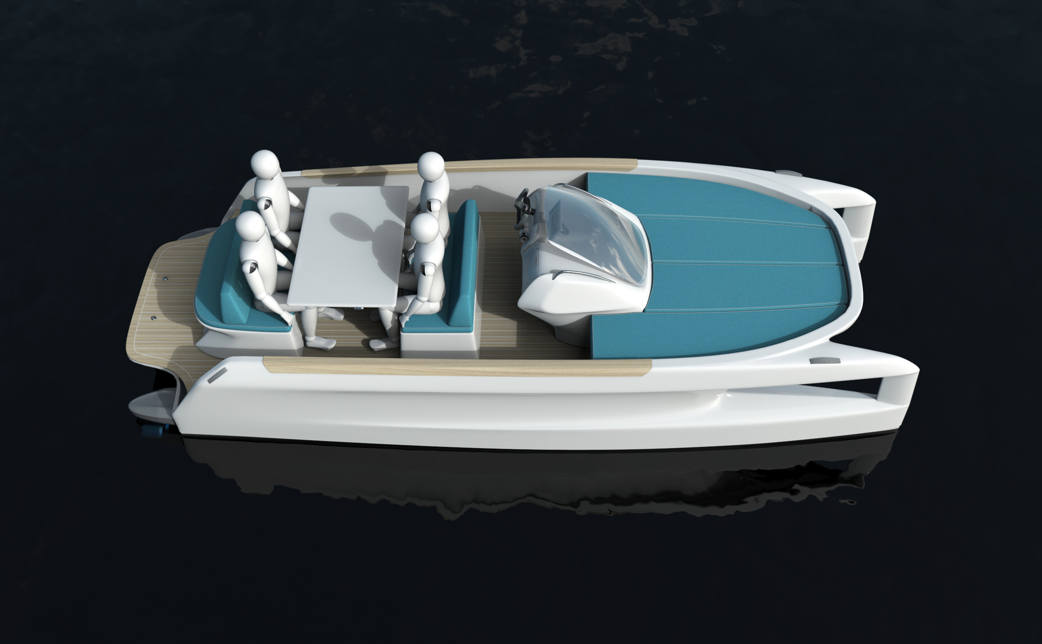 Combining shapes and functions, this electric catamaran can offer an huge space compared to monohull competitor of the same size, with as additional, a greater performance due to the hull efficiency.
