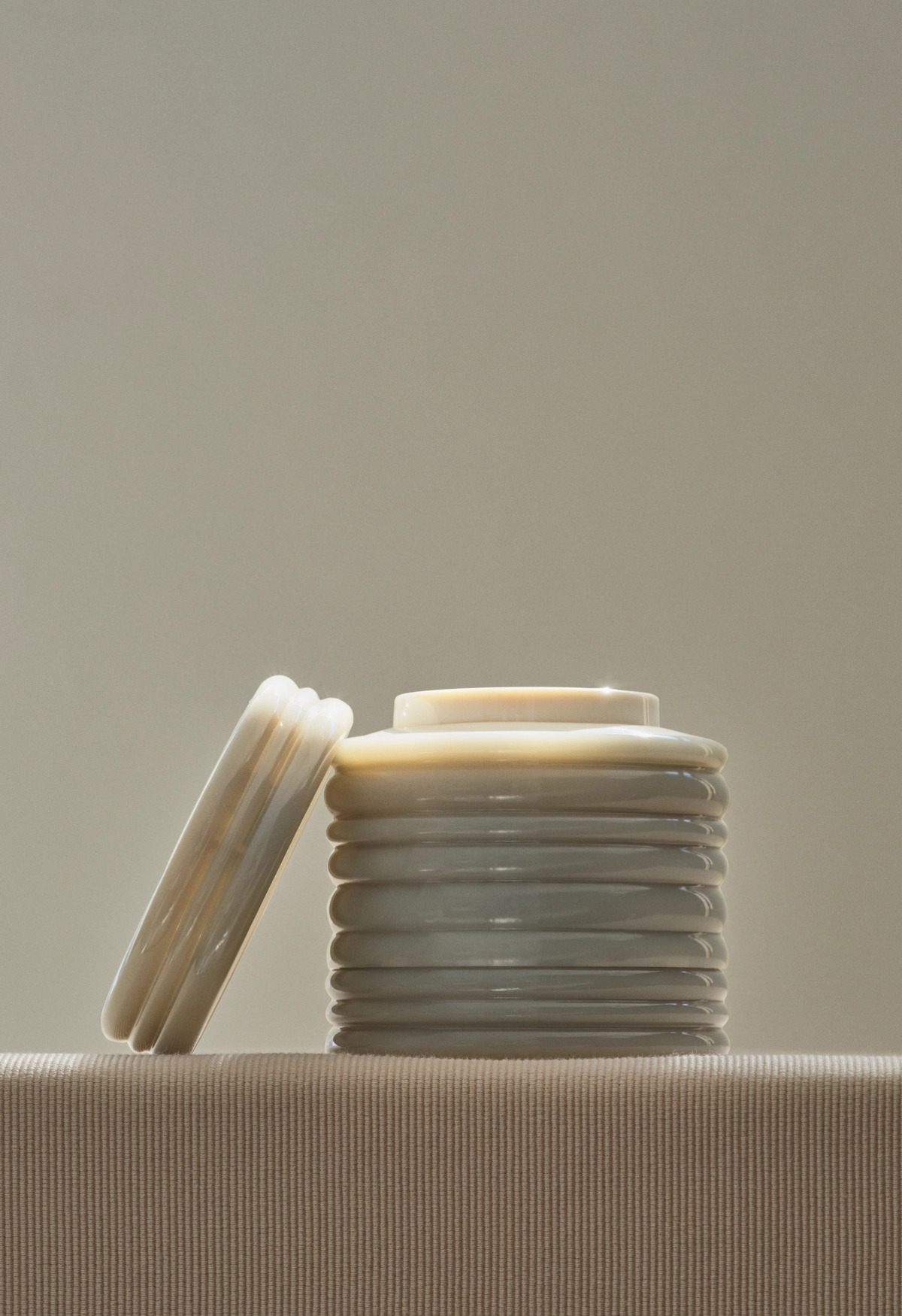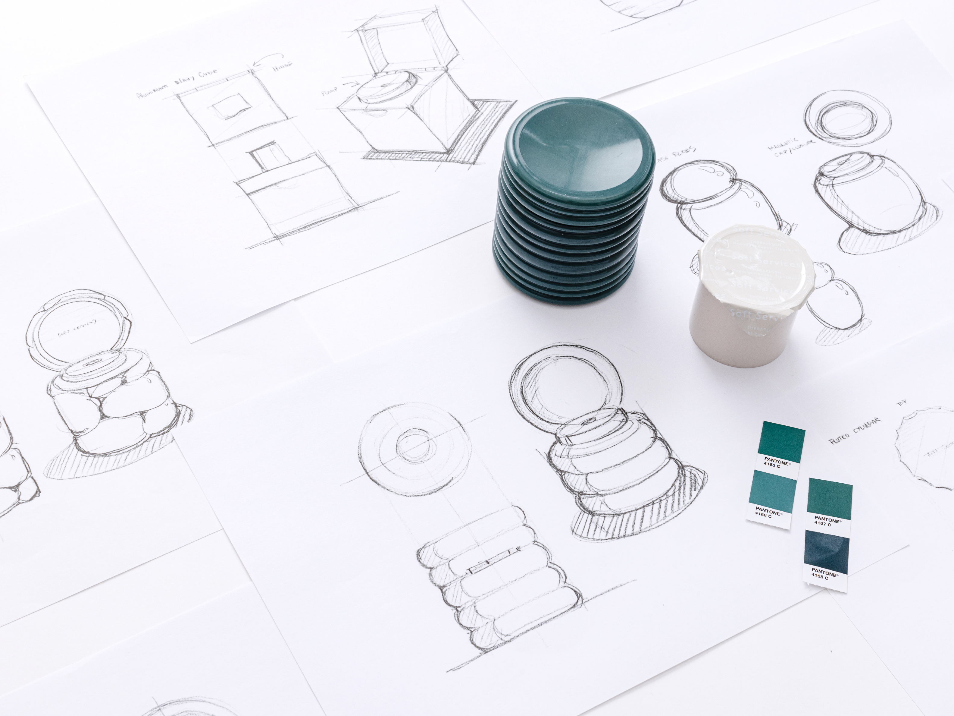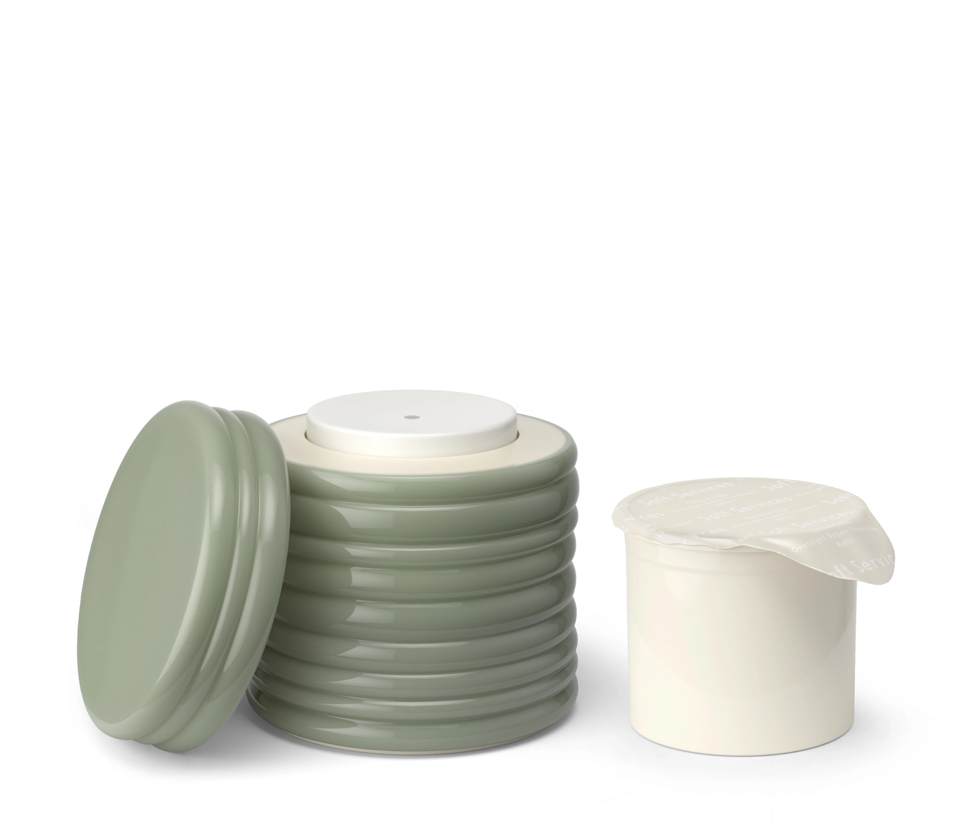 Bodycare brand Soft Services developed Theraplush overnight hand treatment, which contains retinol, an ingredient that requires protection from oxygen exposure for best performance. An airless pump system is the ideal packaging, though existing componentry options create too much waste. Inspired by carved jade ritual objects, the case houses 6-weeks worth of Theraplush cream in a single treatment pod (recyclable curbside). It allows for repeat use of essential non-recyclable componentry, while also encouraging the user to incorporate Theraplush into their nightly routine. Best used as the very last step before going to sleep, the user can take off jewelry, place on the dipped surface of the magnetized lid, easily remove it to pump out an application of cream, and “close” the lid again with no need to handle cumbersome packaging with freshly-moisturized hands.