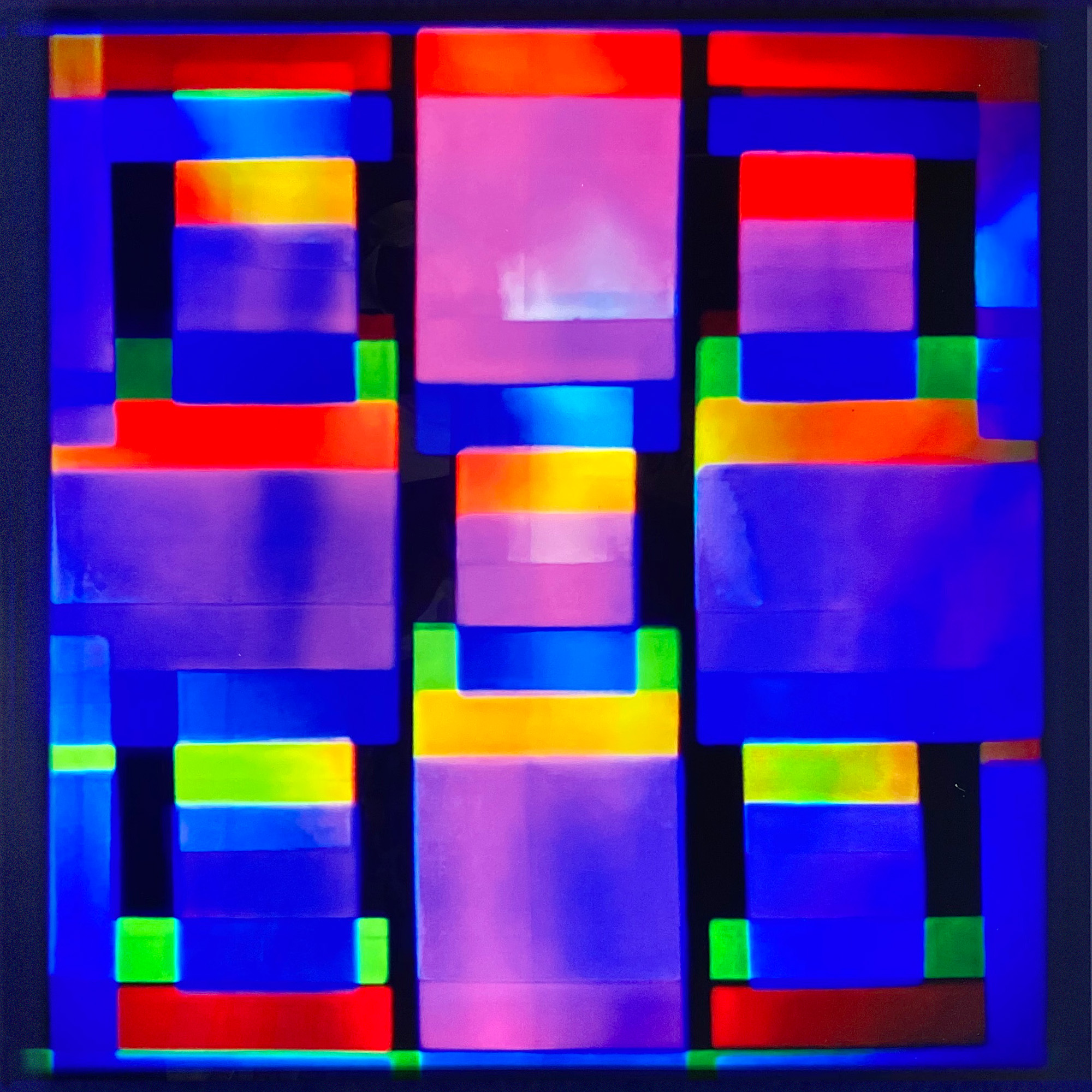 colors of the painting. For example, red becomes less intense, blue
