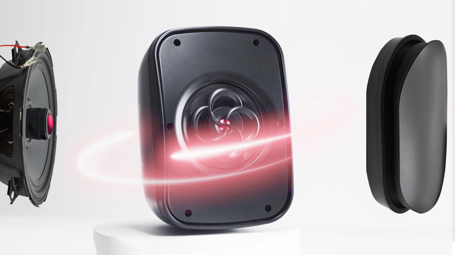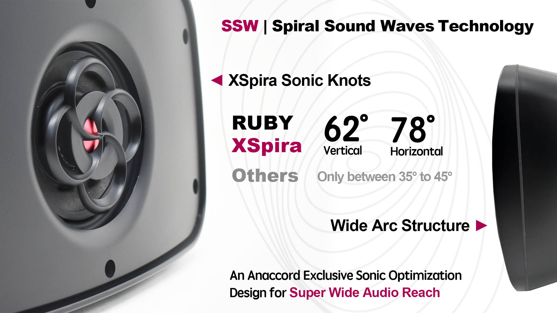 Ruby XSpira is an IPX66 waterproof desktop and wall-mount speakers developed with Anaccord's innovative[Sonic Optimization Design Technology]. The iconic [Spiral Sonic Knot] on the front that resembles the shape of the Celtic Five-Fold Symbol not only looks good, but also contributes to the 62° vertical and 78° horizontal (normally 30° and 45°) super wide audio reach. When the patented spiral knot works together with the High-fidelity Coaxial Speakers and the Optimal Bass Enhancement (OBE) radiator at the back, users can experience an immersive 360° of deep bass and sonic purity, delivered in a sophisticated and modern housing design of aesthetic beauty.