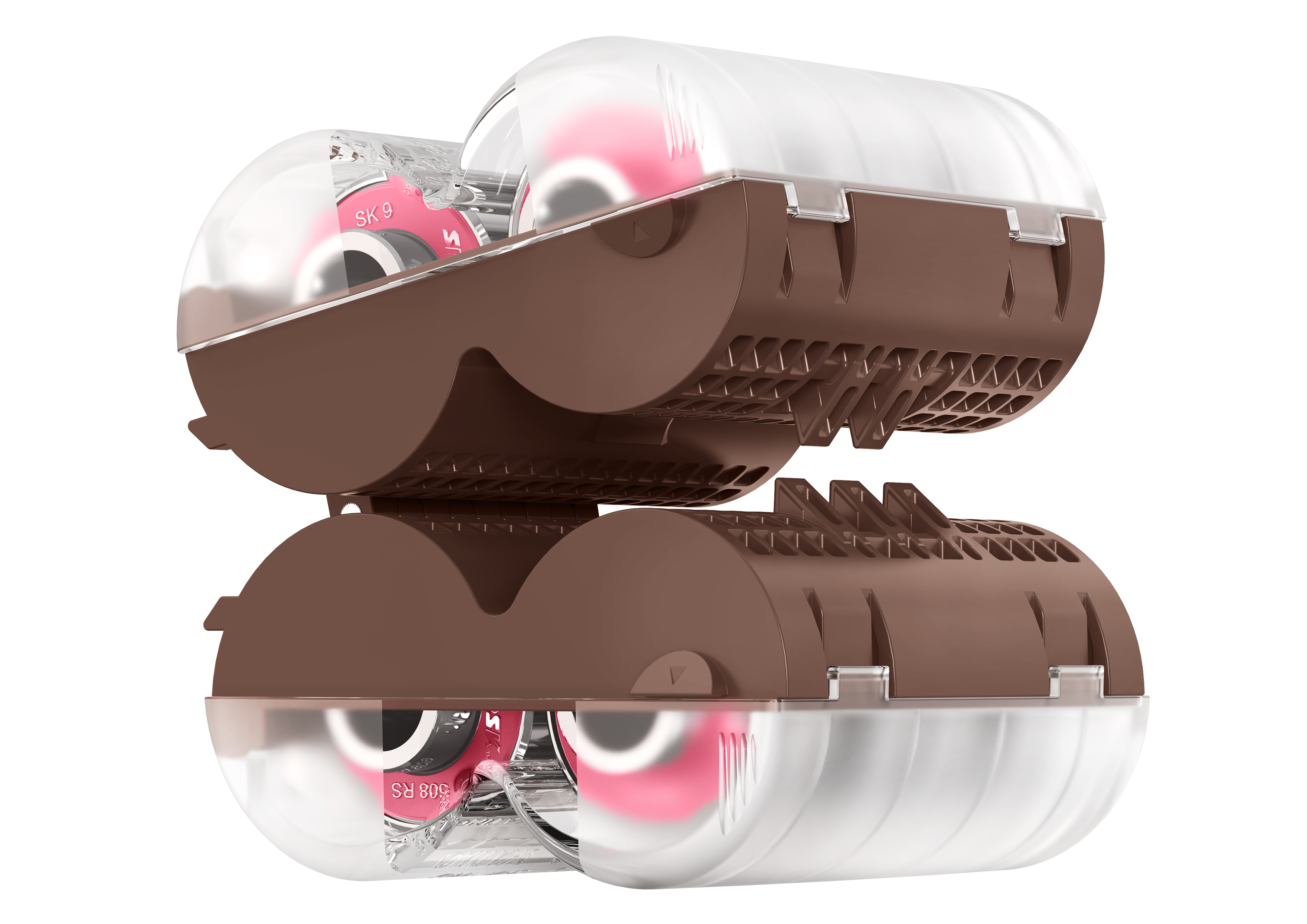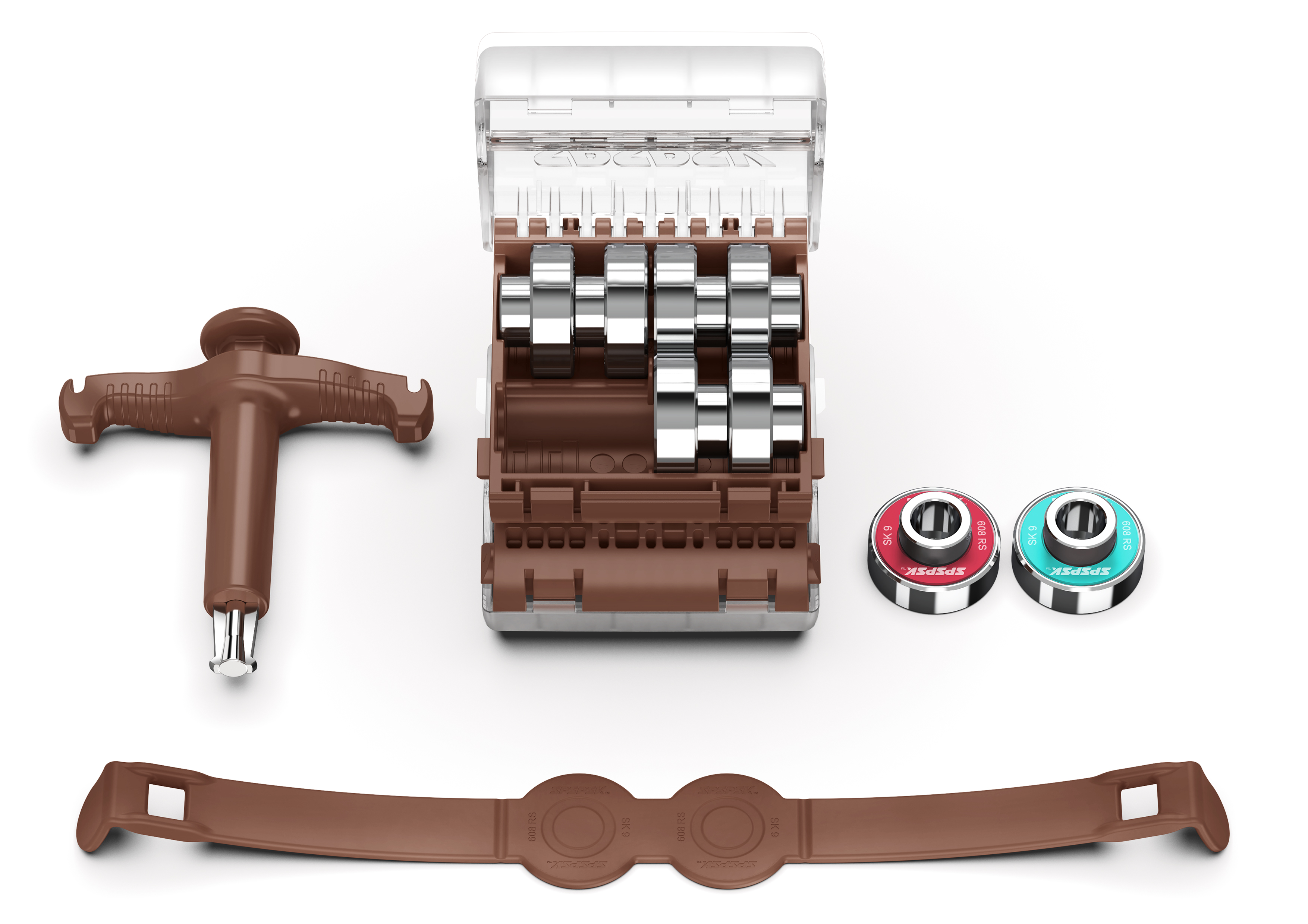 To satisfy roller skaters’ needs of bearing storage and aesthetics of life, this bearing storage case is innovatively developed centered on the characteristics of roller skating, aesthetics of machinery, safety, etc., which boasts superiority in appearance, humanization, convenience and efficiency.