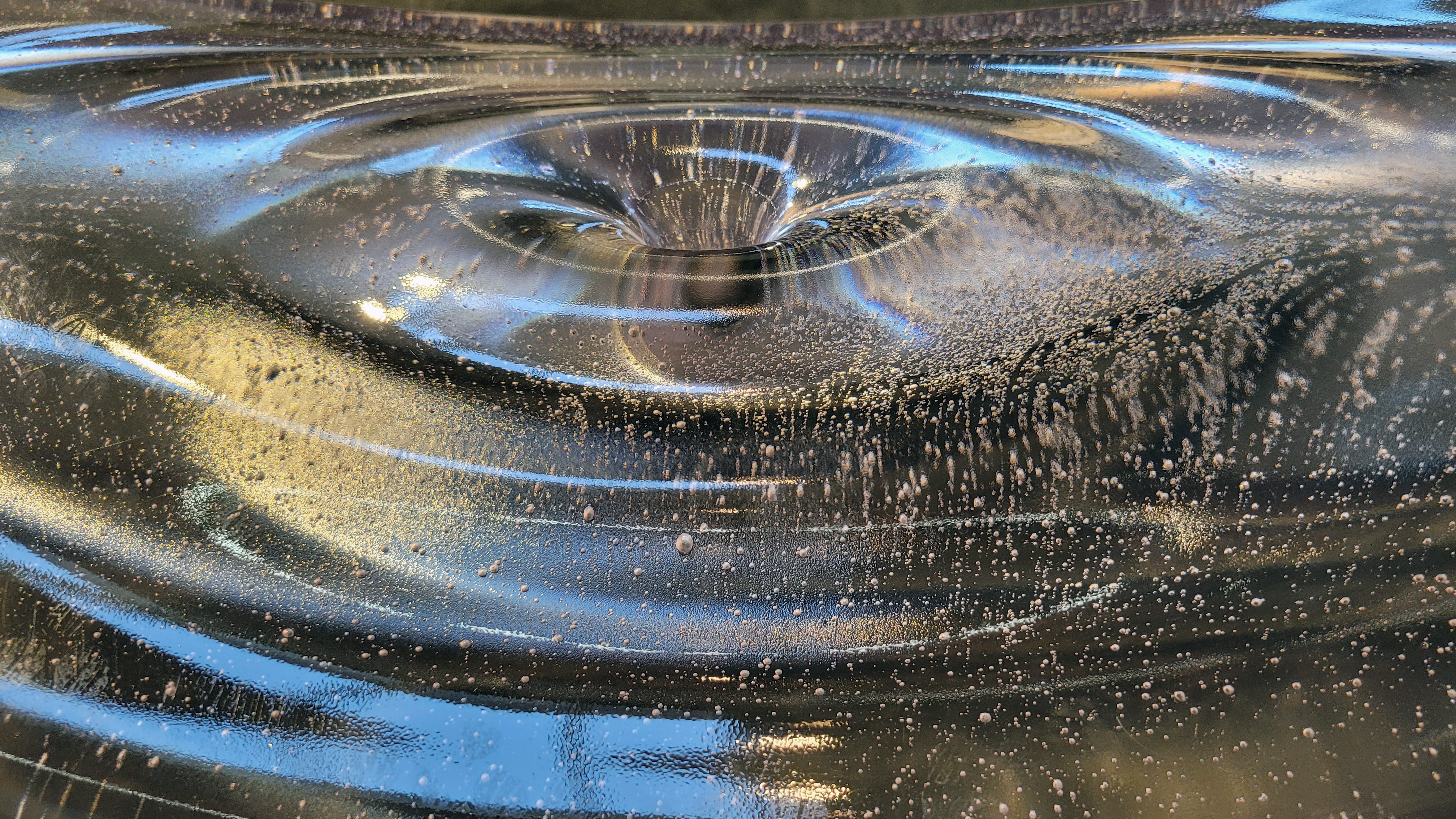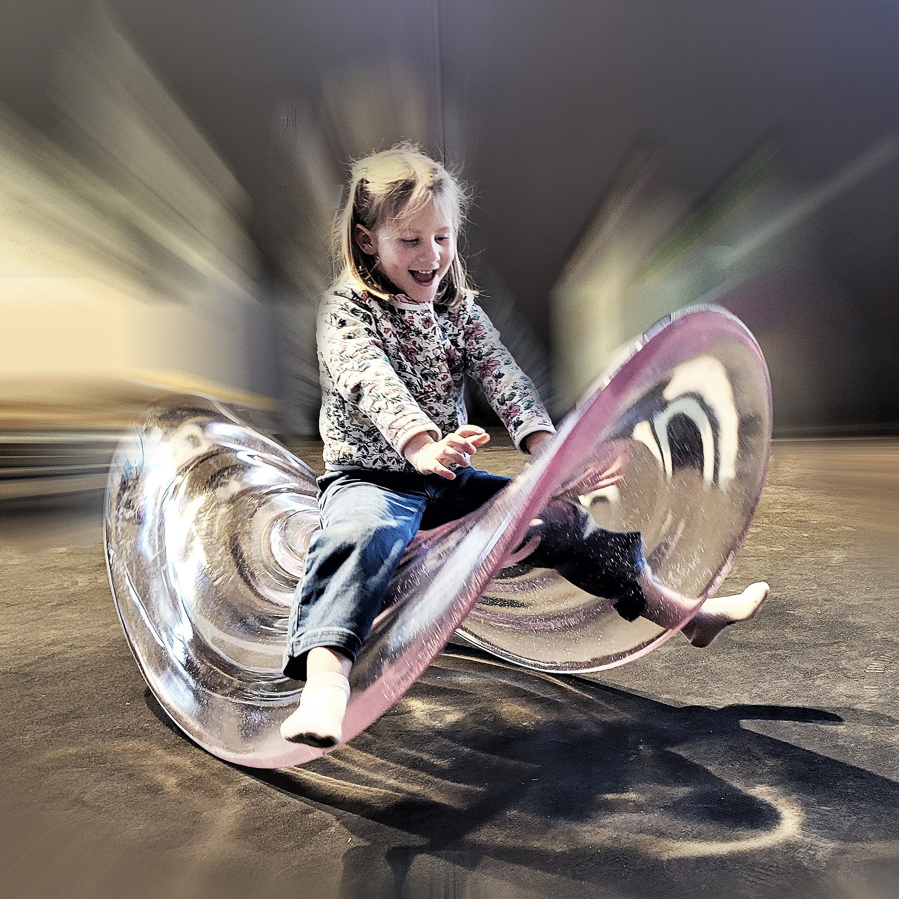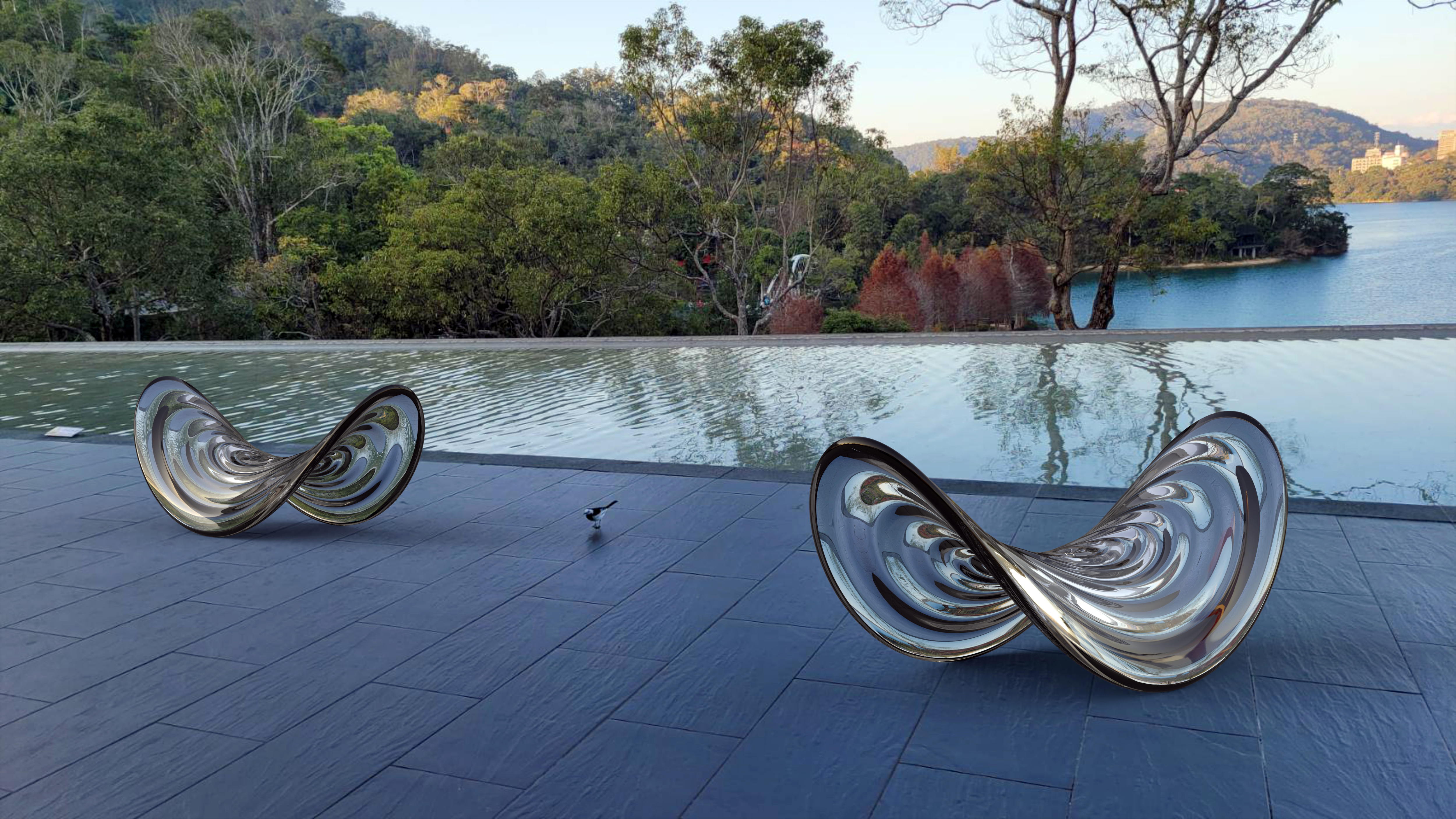 Inspired by Ripples. It presents the image of the condensed state of ripples flowing up and down, just like the frozen water surface, bringing users an interesting and novel atmosphere. As a result of the designer's passion for research and development of new techniques, this work is not only made of fully transparent materials, but the appearance itself has a safe structure and interactive functions. This is a sculpture and a A chair that can interact with people makes users feel like sitting on water ripples, and can swing freely with their mood, adding to the fun of life.In addition to the fully transparent texture, this work is characterized by the image of water ripples flowing. Whether indoors or outdoors, especially where there is light, its water ripples will show natural light and shadow through the ground. At rest, it looks like a water ripple sculpture, full of artistic conception; however, when interacted, it becomes a fascinating piece of furniture.